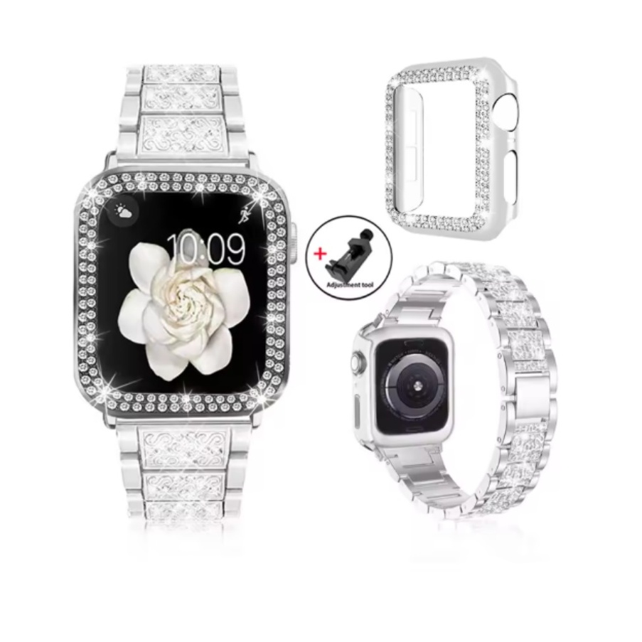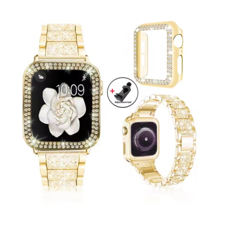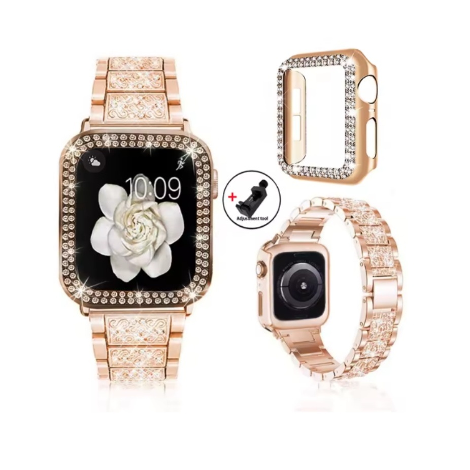 Diamante Pulseira De Aço inoxidável+Diamante Capa Kit Para Apple Watch 10 11 46mm 49mm 40mm 44mm 41mm 42mm 38mm 45mm