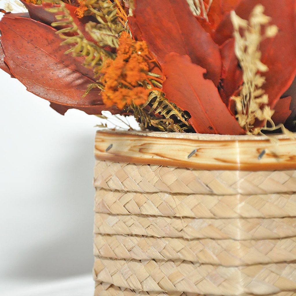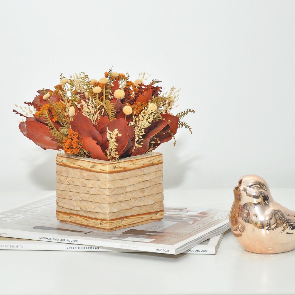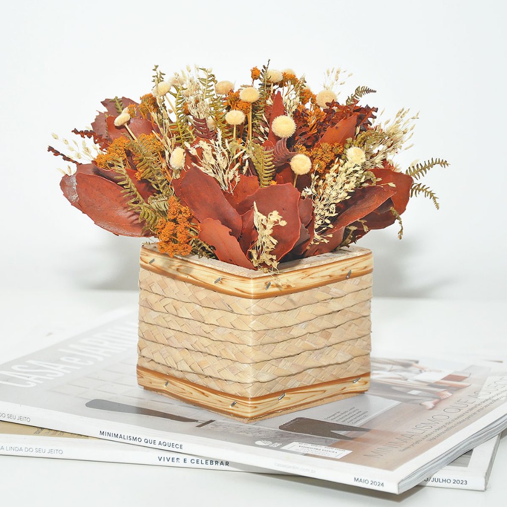 Arranjo vaso decoração flores desidratadas rústico pequeno cachepot de palha artesanal