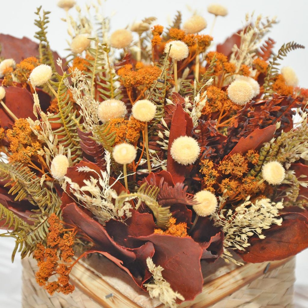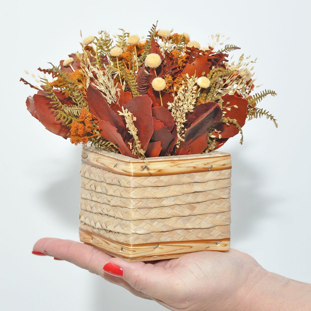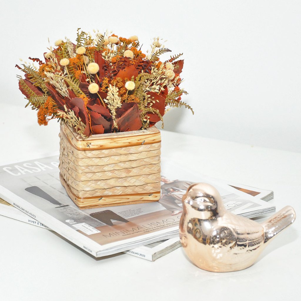 Arranjo vaso decoração flores desidratadas rústico pequeno cachepot de palha artesanal