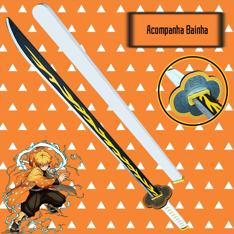 Espada de Brinquedo Nichirin em Madeira Demon Slayer / Kimetsu no Yaiba Zenitsu para Decoração ou Cosplay ou Treino