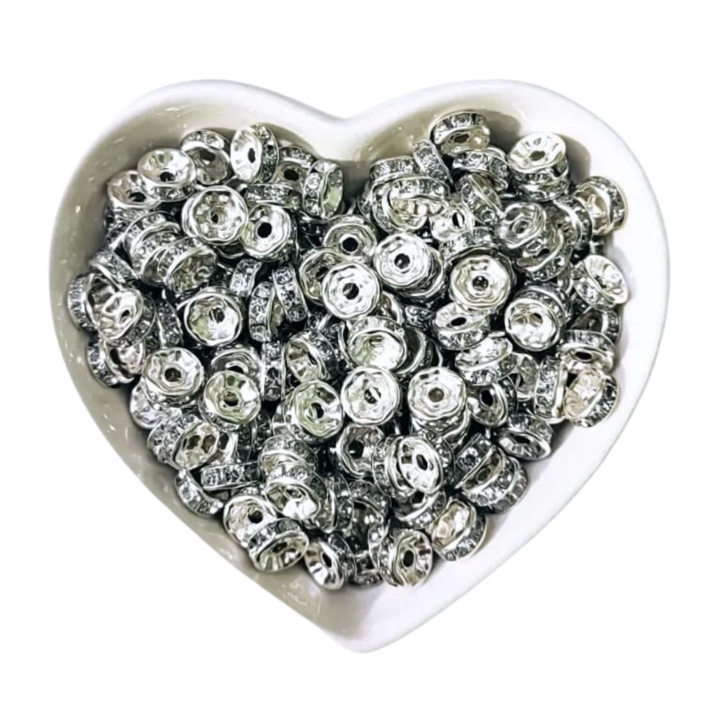 Kit 100 ou 500 un Rondelle com Strass 6 ou 8mm Entremeio na cor Prata ou Dourado