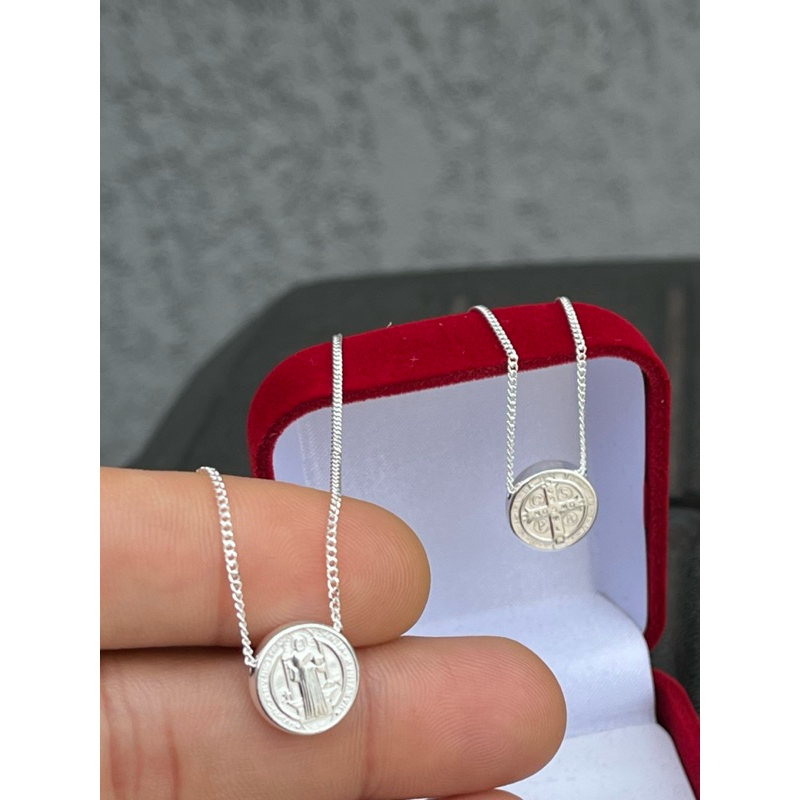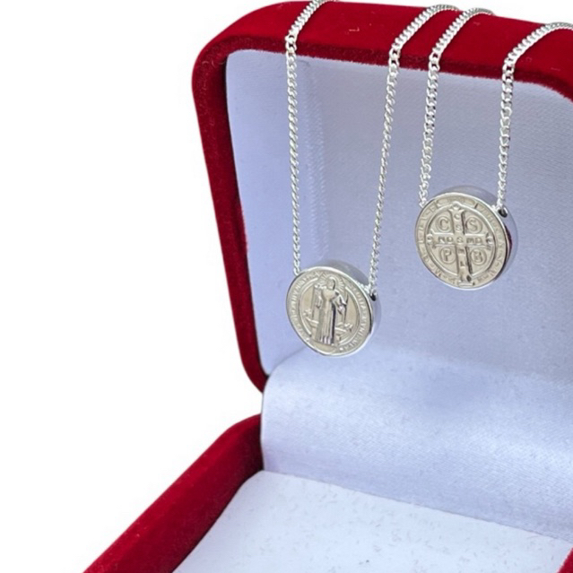 Escapulário religioso 60 cm - são Bento prata 925 legítima + caixinha de veludo