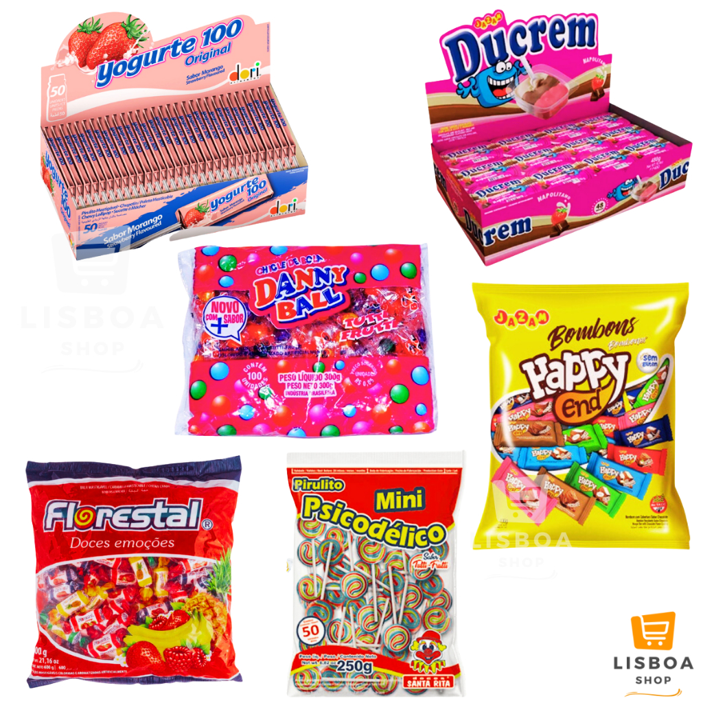 Doces Para Lembrancinhas 50 Sacolinha Surpresa Aniversário 6 Guloseimas Com 400 unidades