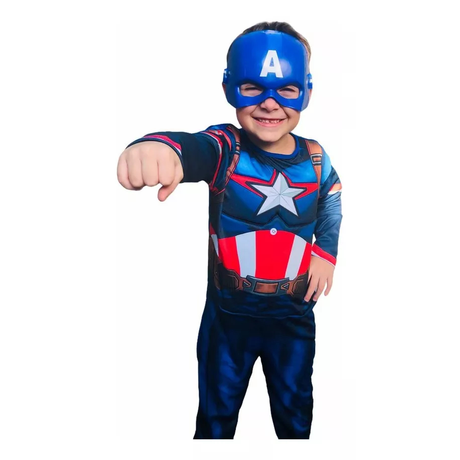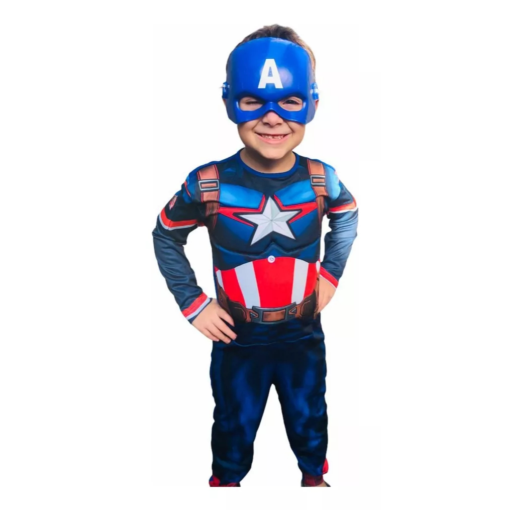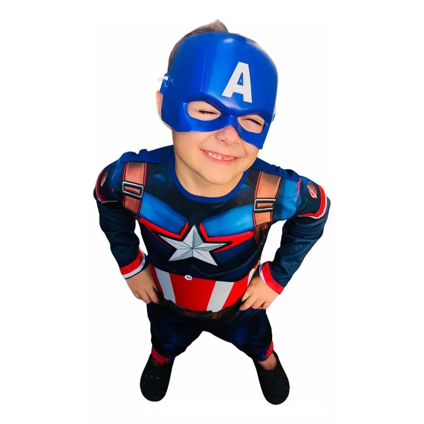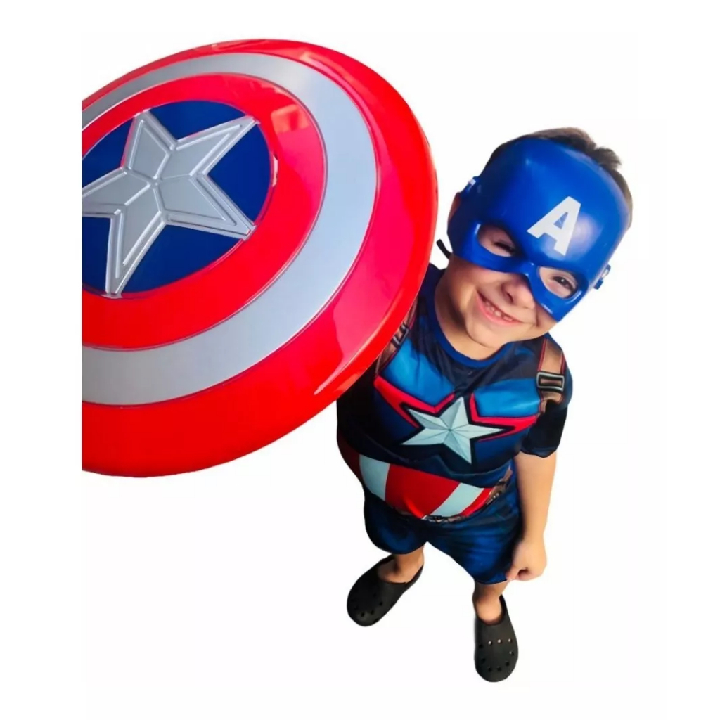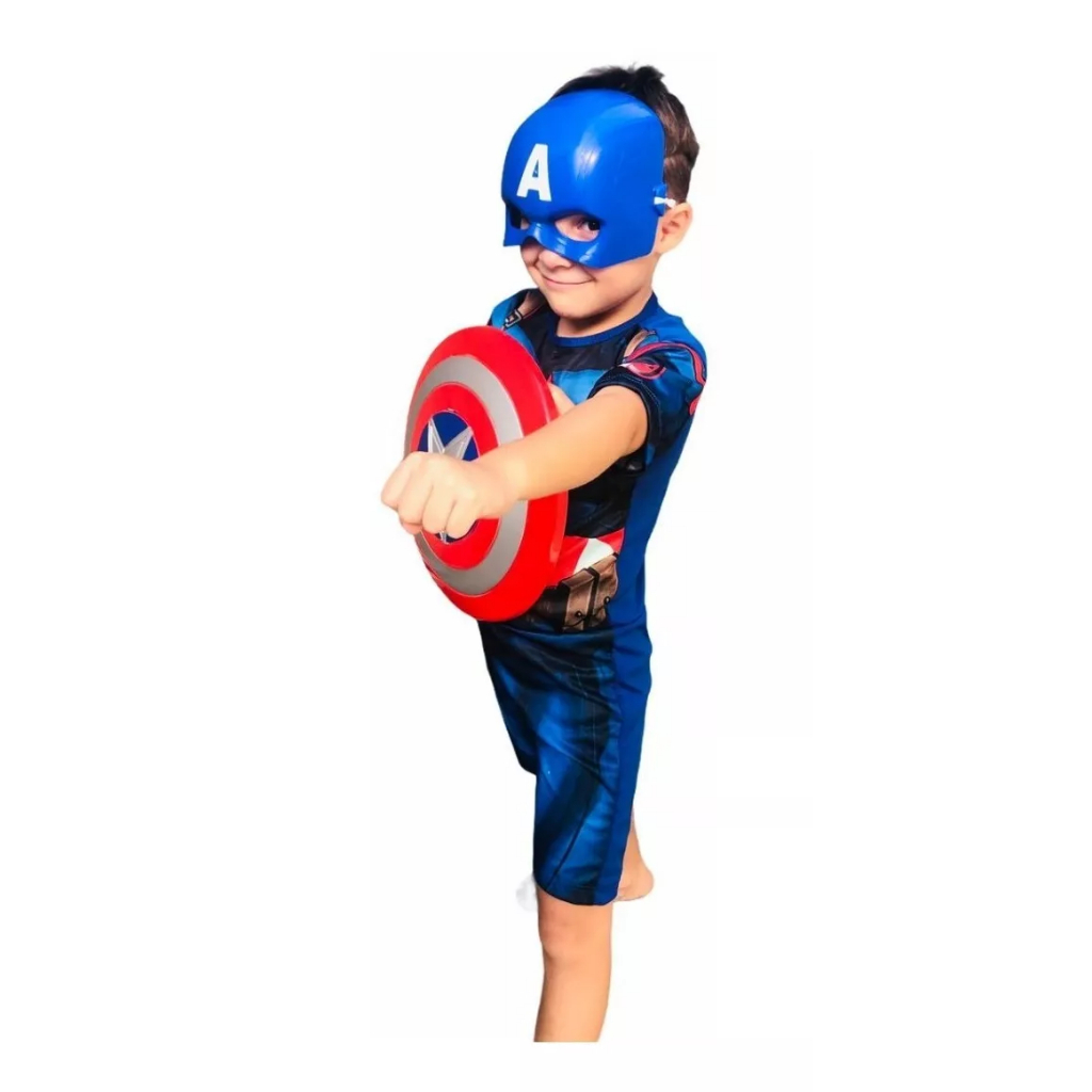 Fantasia Capitão América Longo ou Curto Com Máscara Escudo e Enchimento