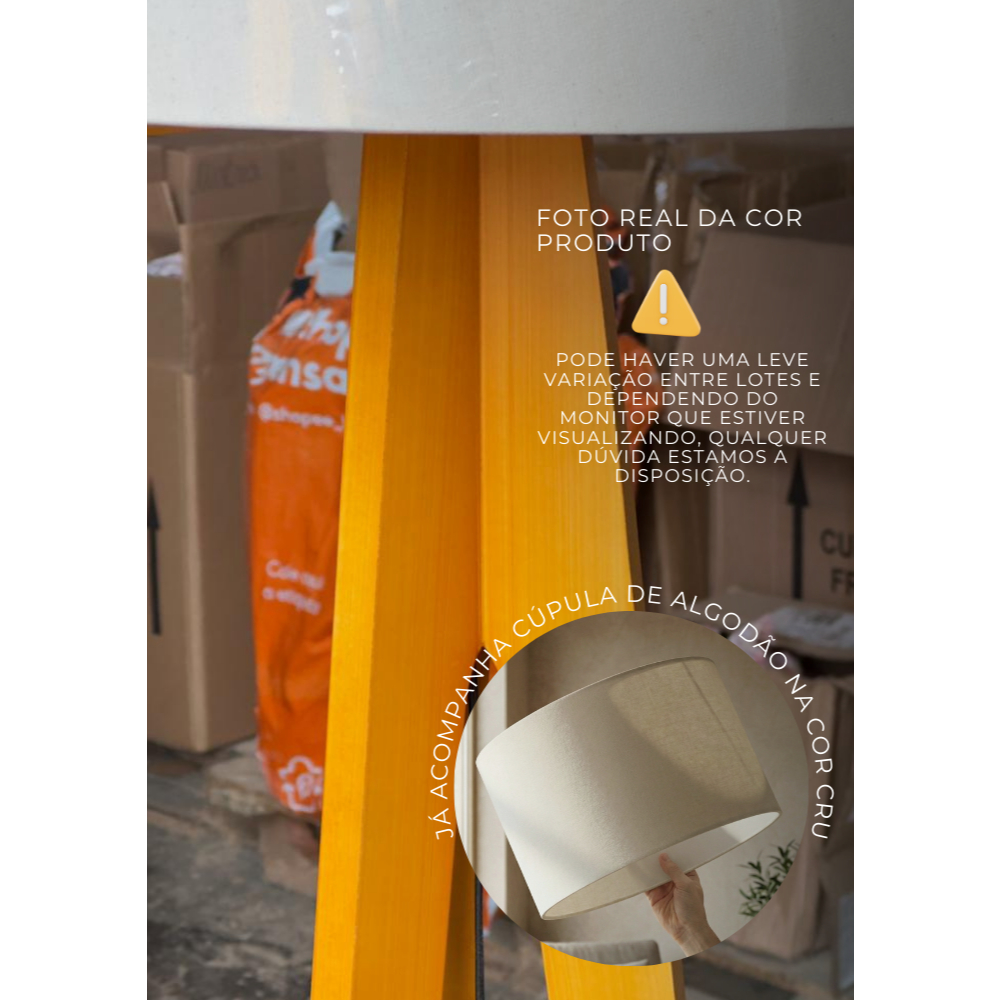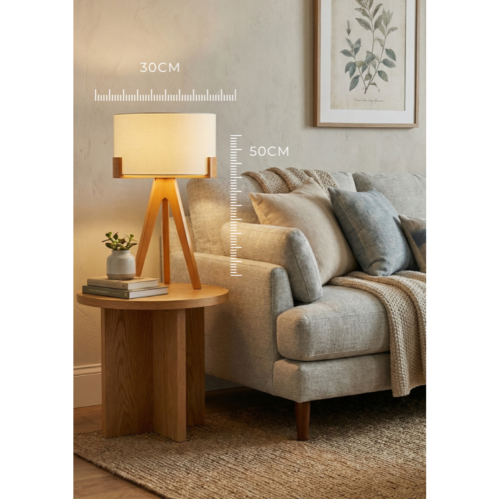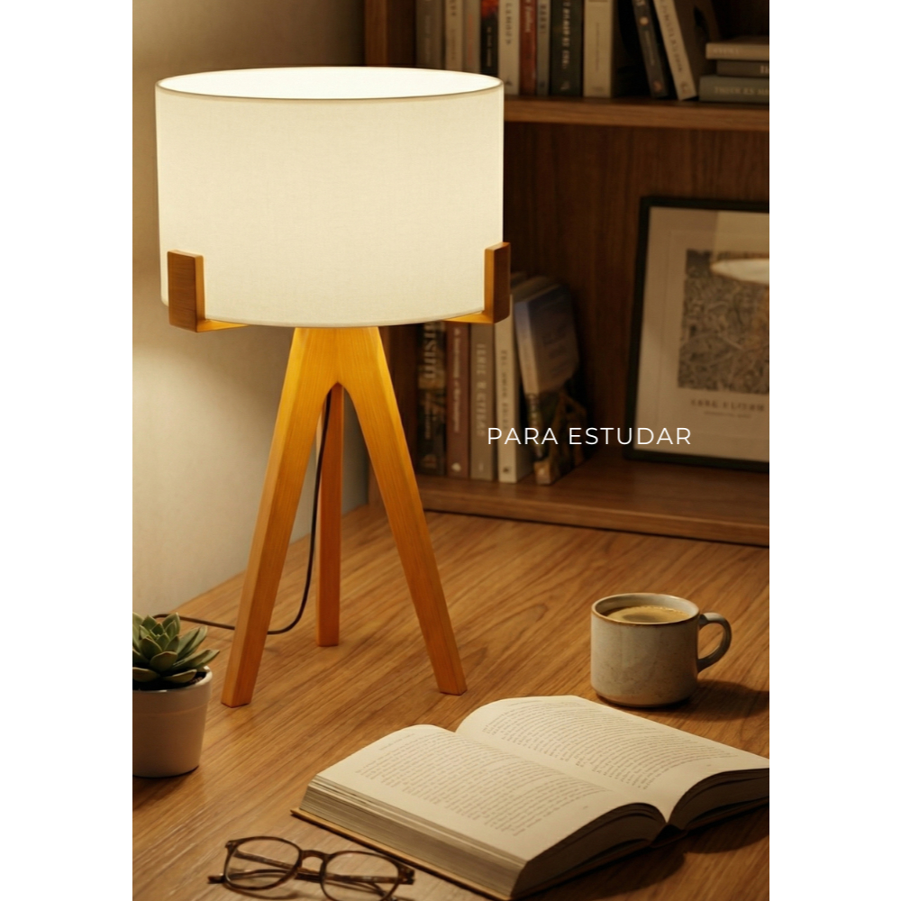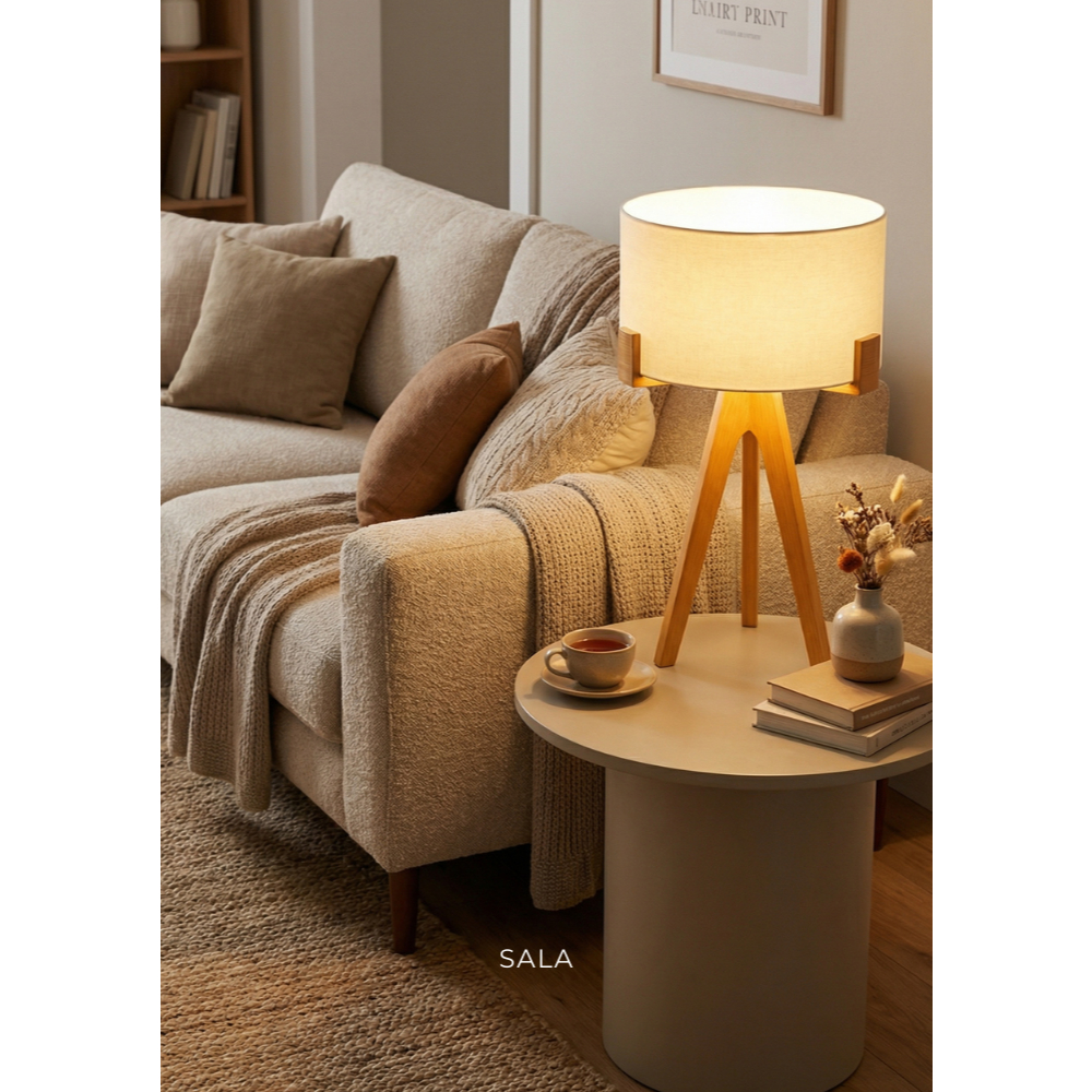 Abajur de Mesa Áustria Tripé em Madeira com Cupula Minimalista Decorativo para Sala Quarto