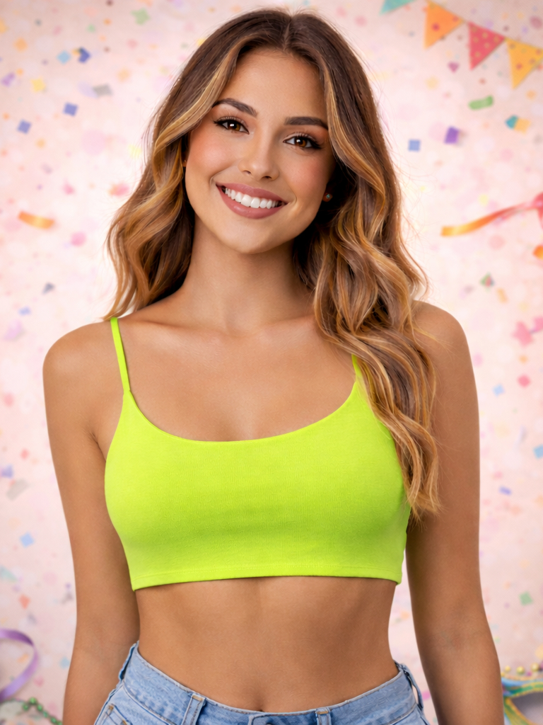 Cropped TOP Carnaval neon Feminino Regata Suplex com Alça Fina – Tecido Confortável | Forro Duplo | P, M G e GG