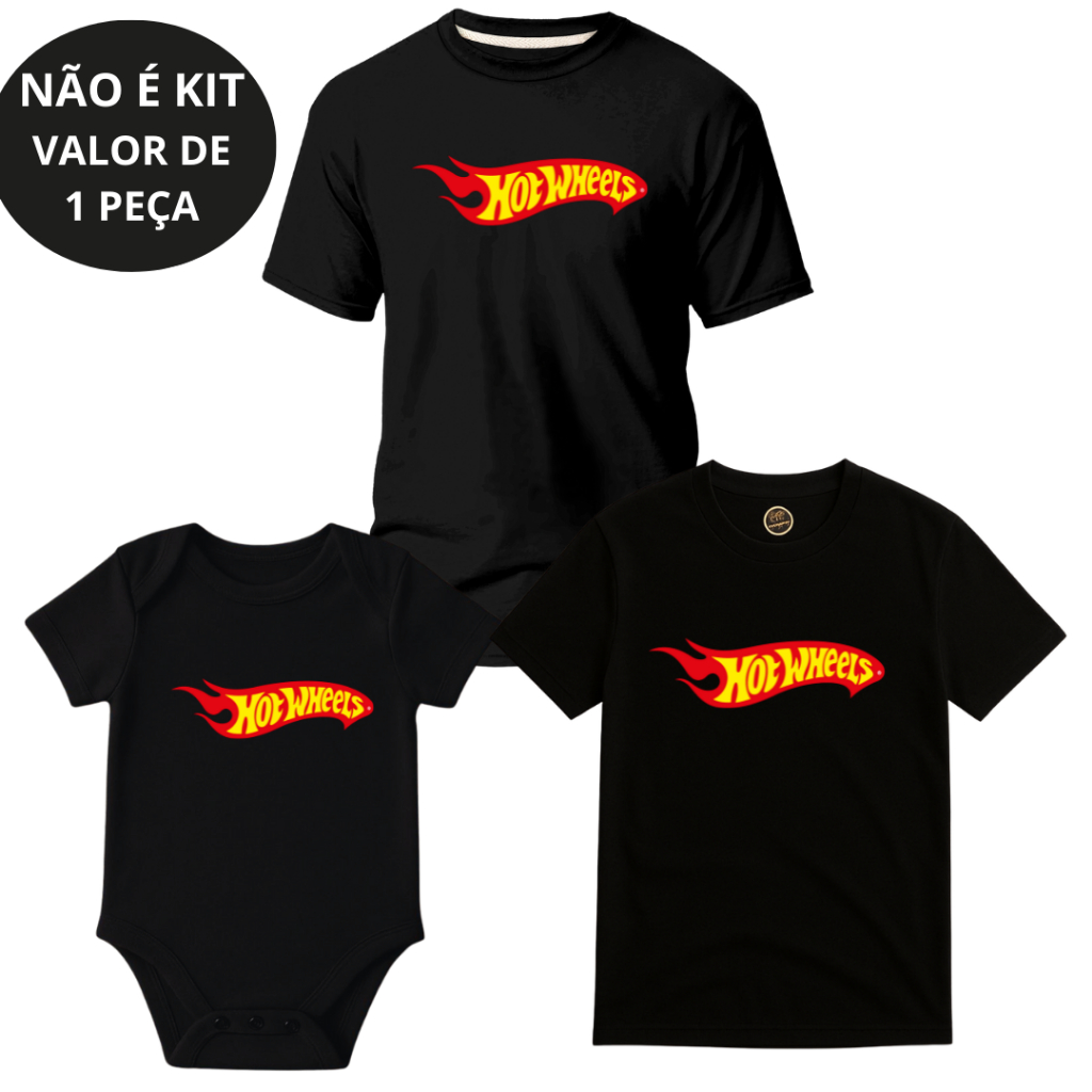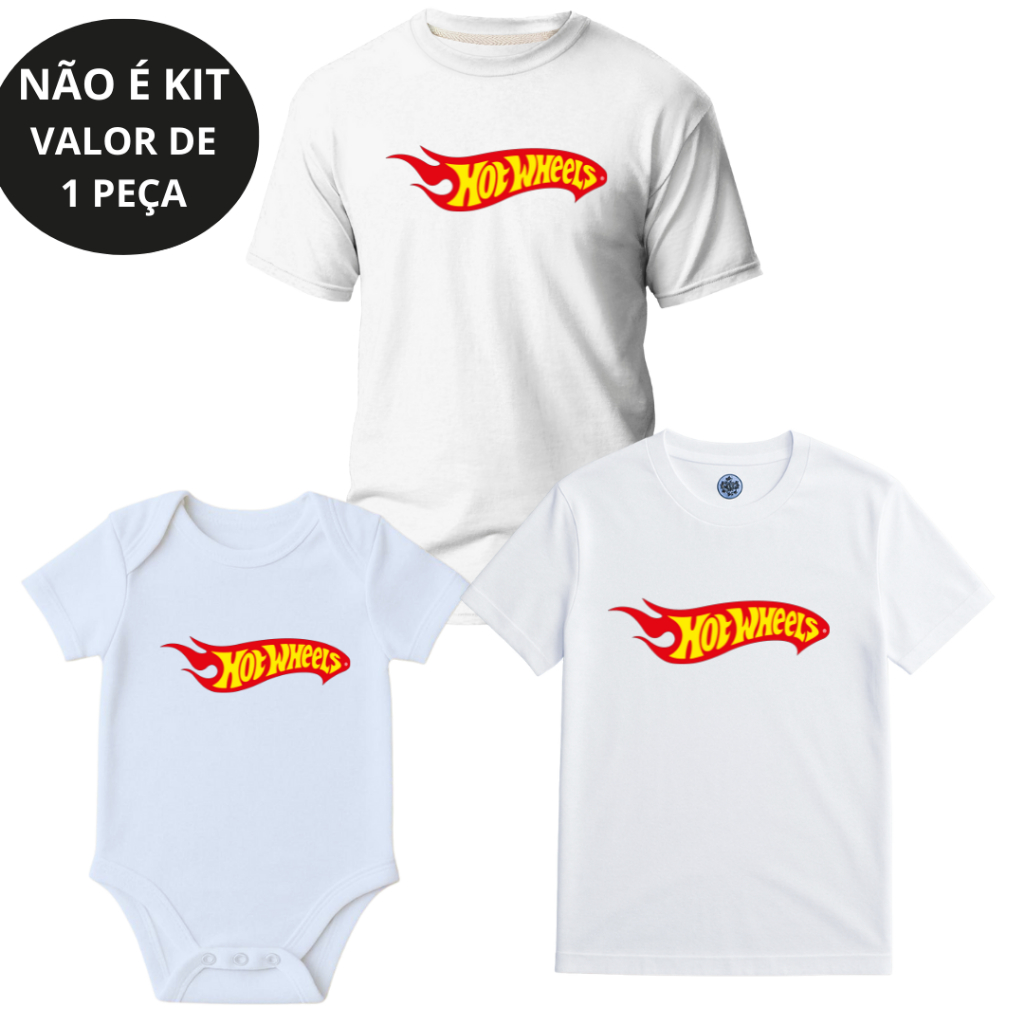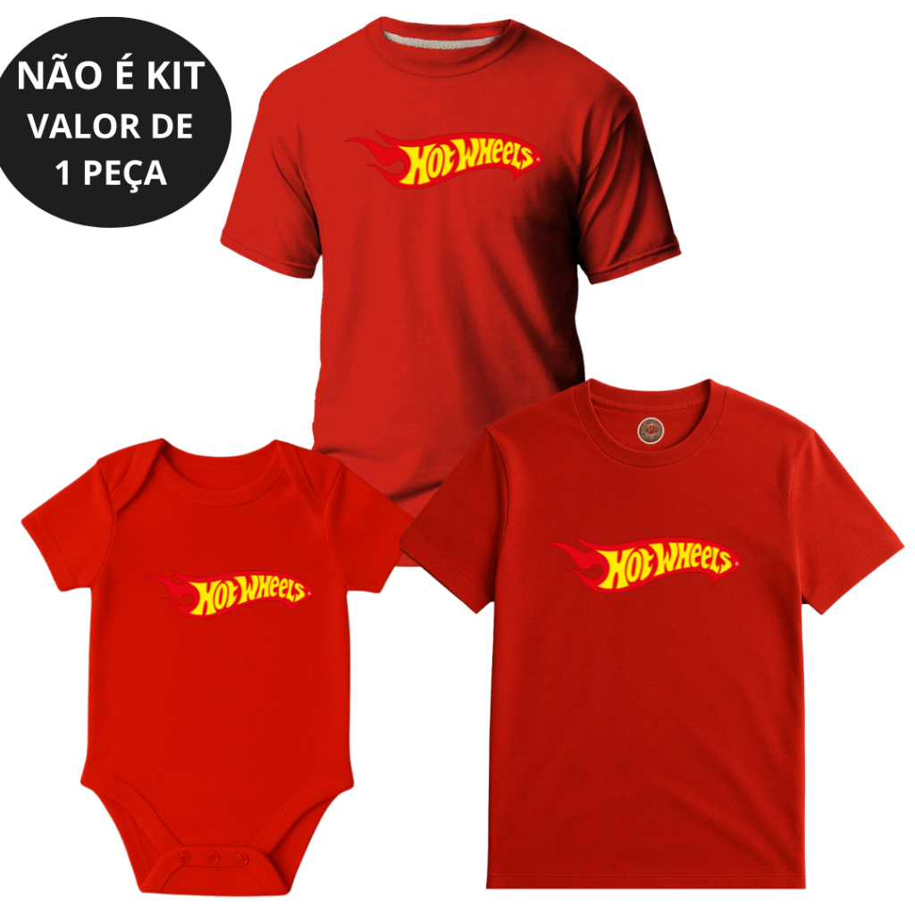 Camiseta Adulto Infantil Juvenil Body bebê Unissex Hot Wheels Festa Temática NÃO É KIT - 1 PEÇA