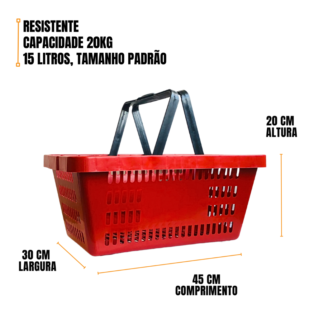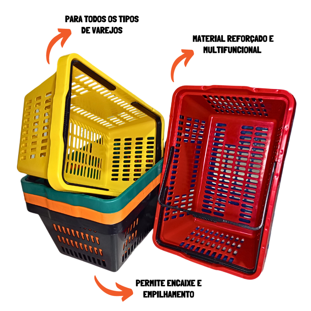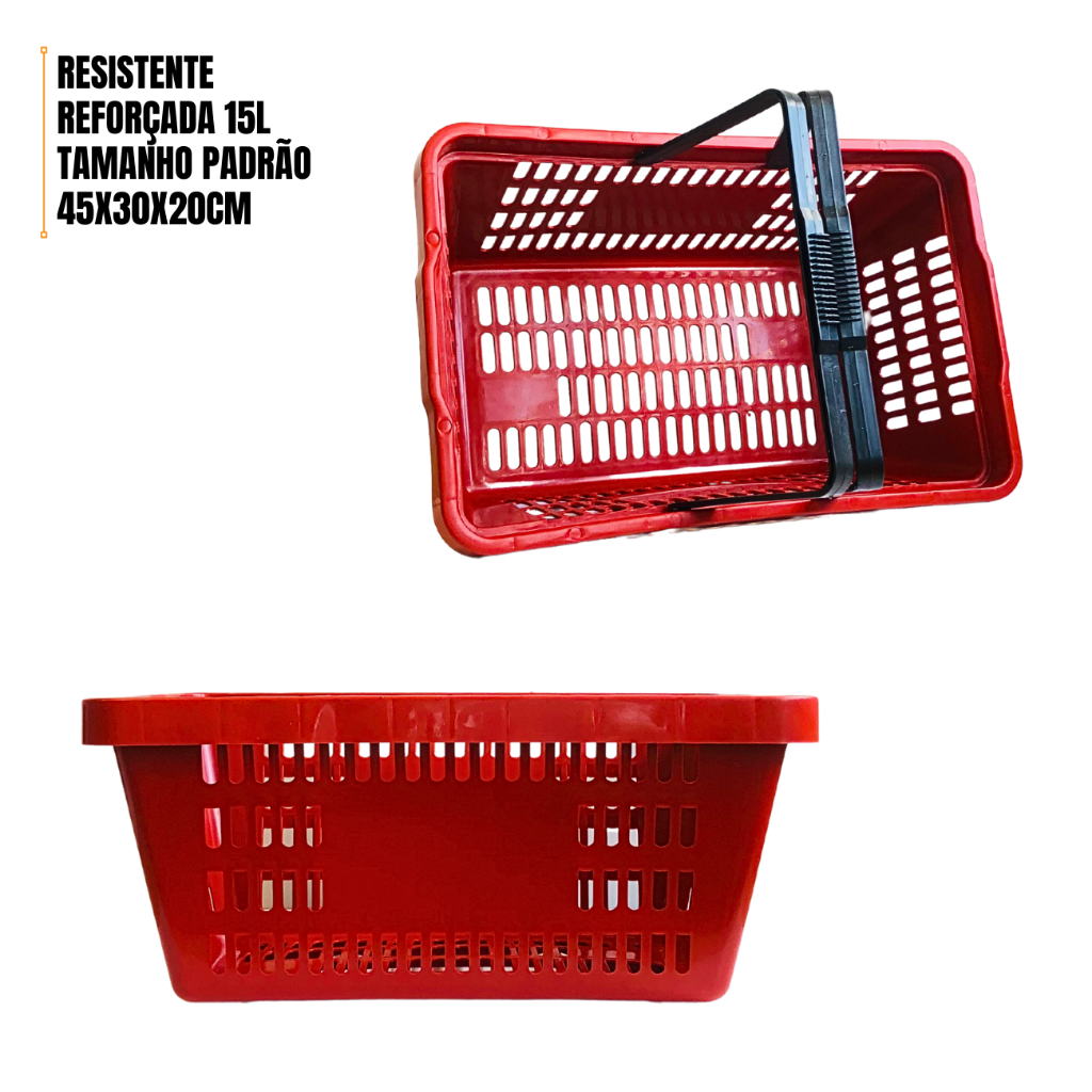 Kit 8 Cesta de Compras Mercado Supermercado Cestinha Plástica Reforçada, Cesto Organizador 15L