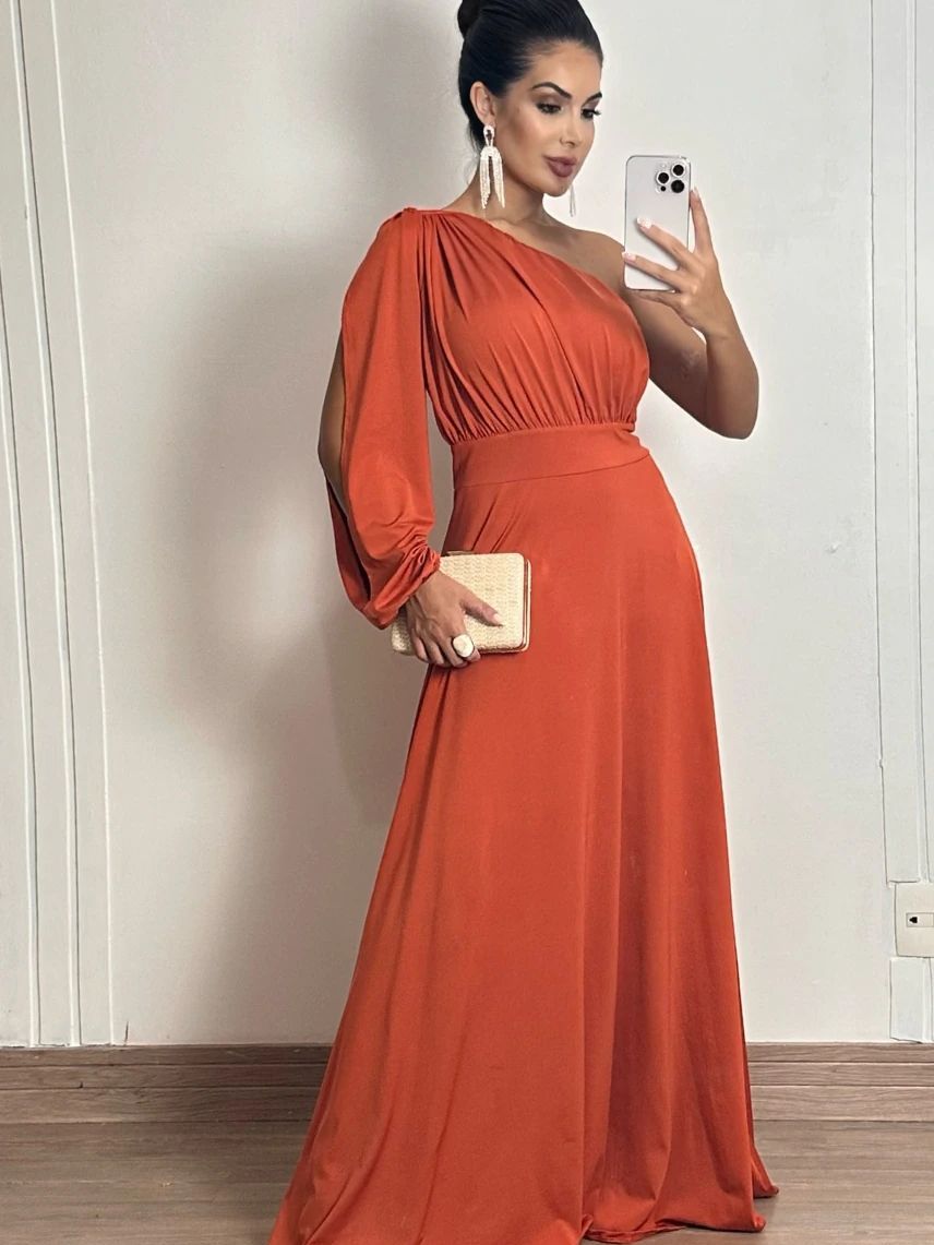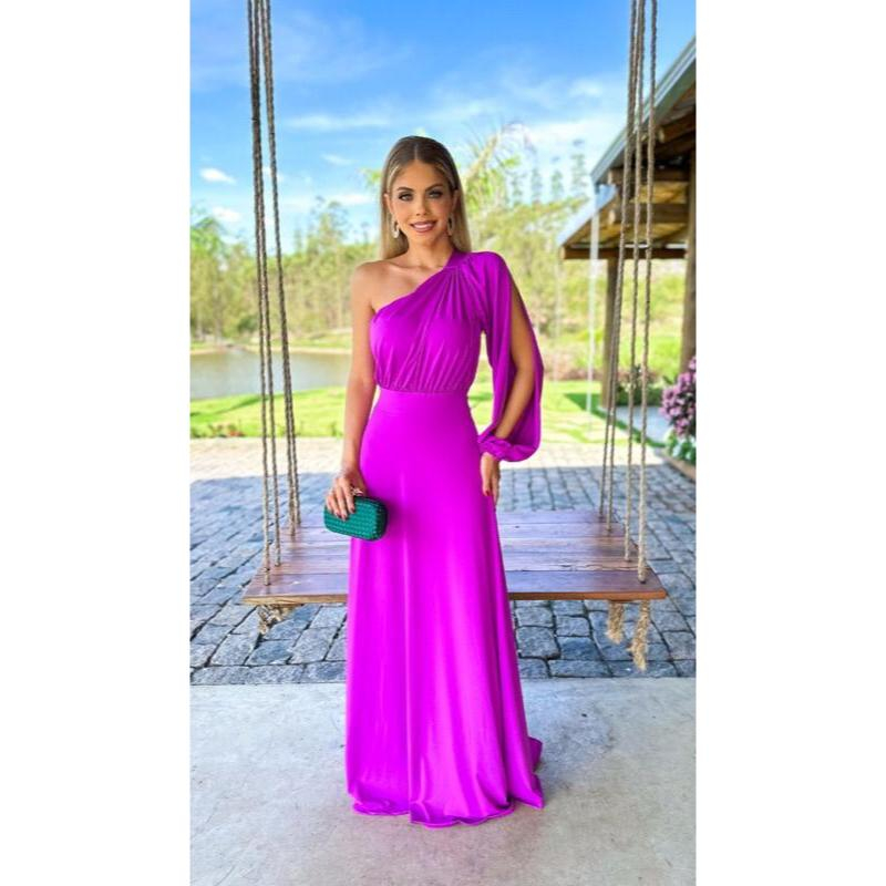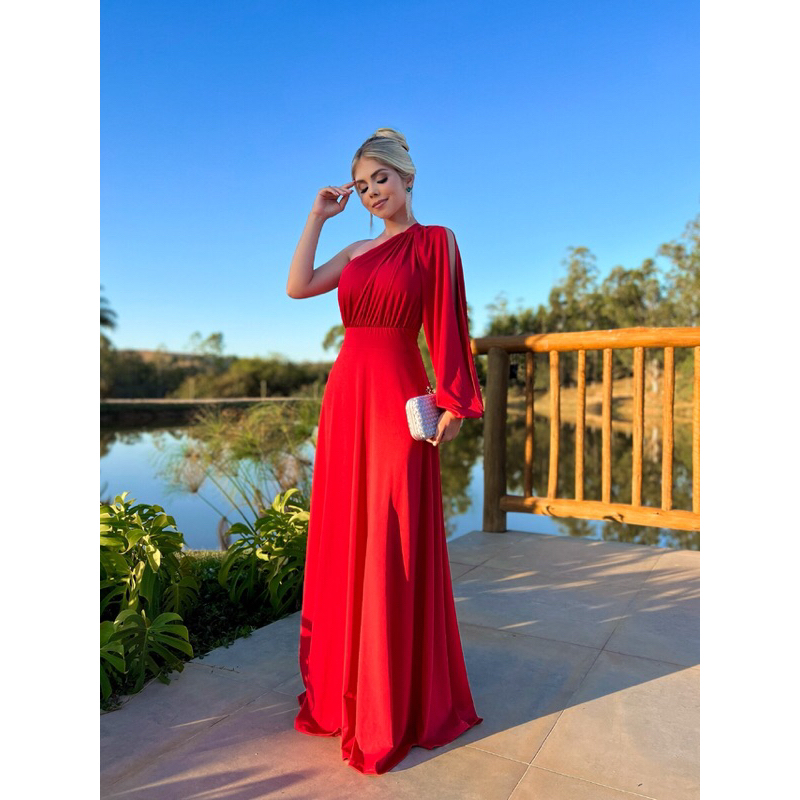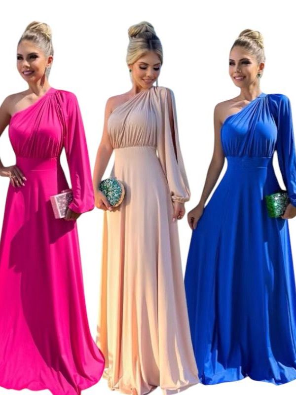 Vestido Longo Social Feminino Manga Longa Madrinha