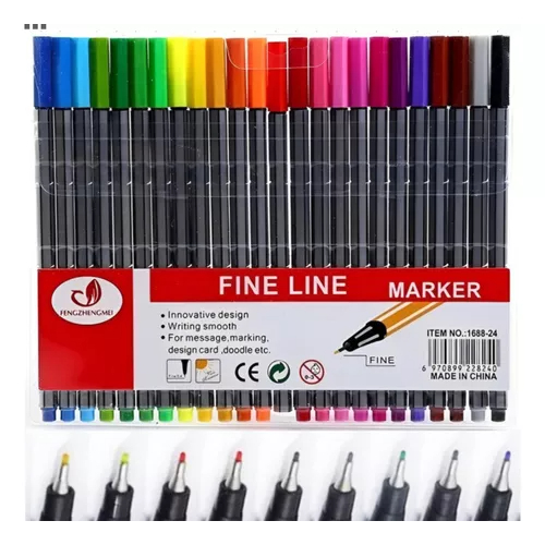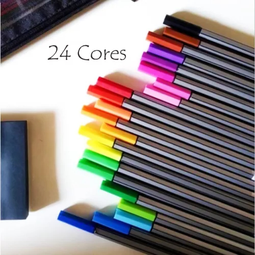 Kit com24 cores Canetas Fine Line Ponta Fina 0.4mm Top