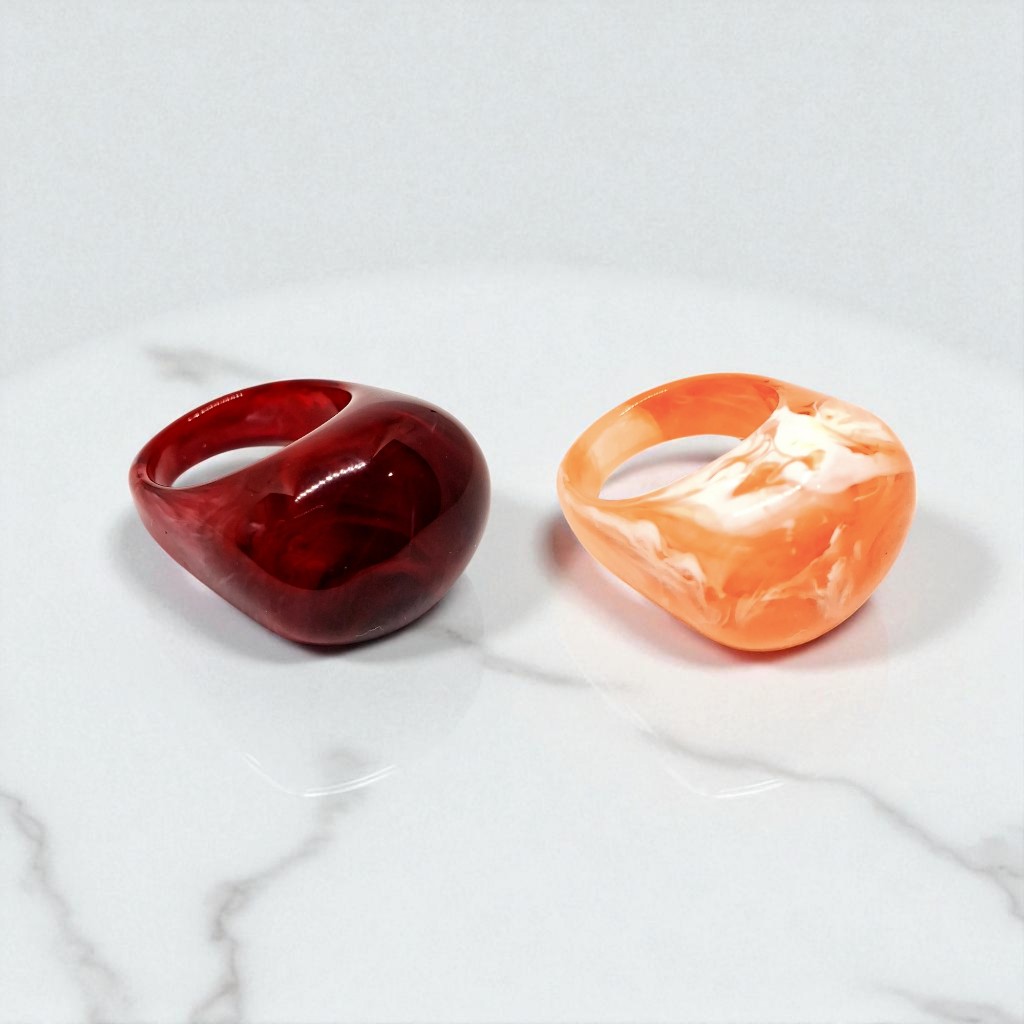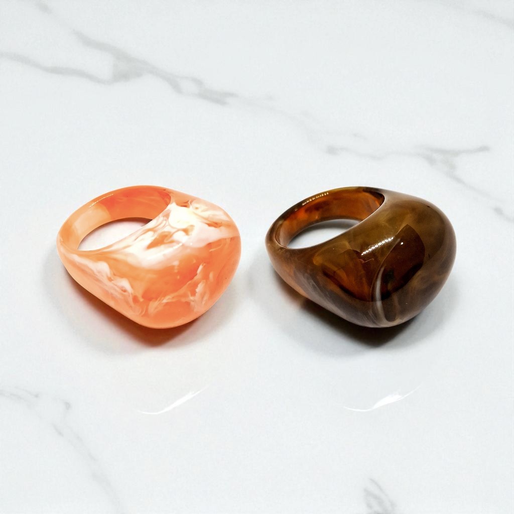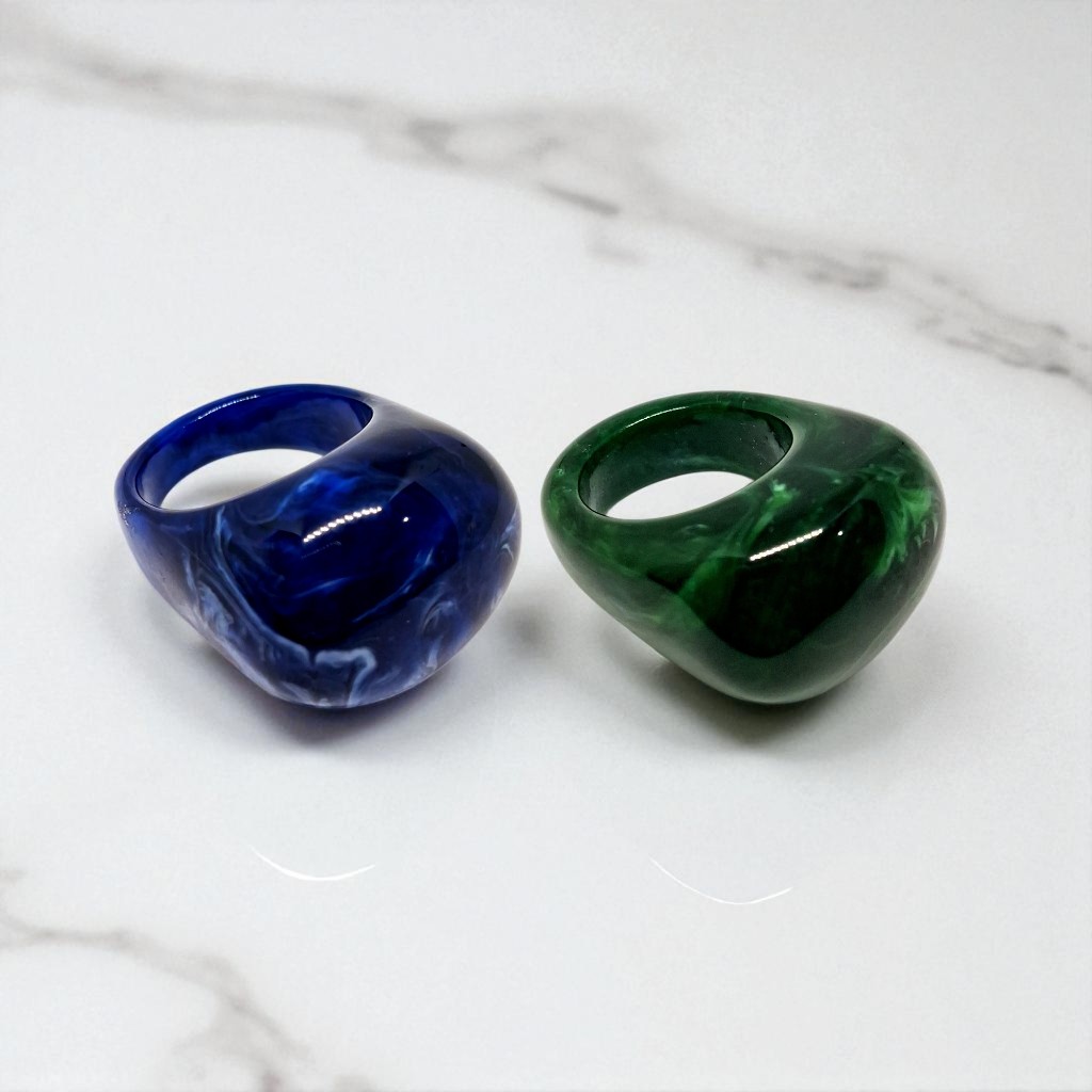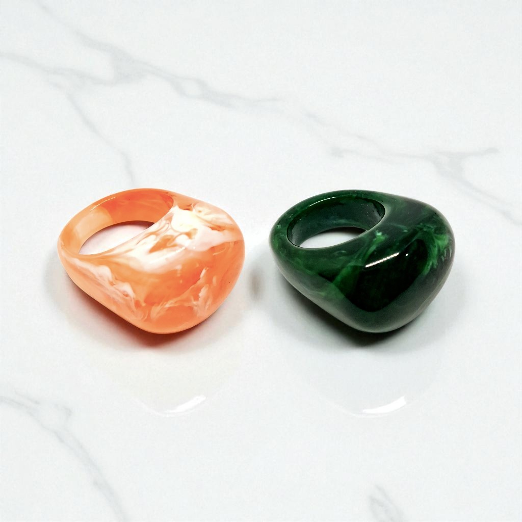 Kit 2 Aneis Resinado Oval Marmorizado Cores