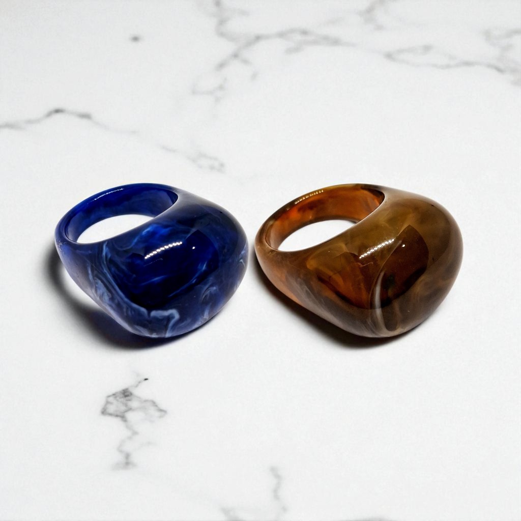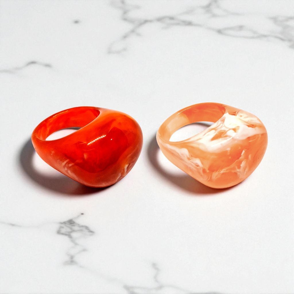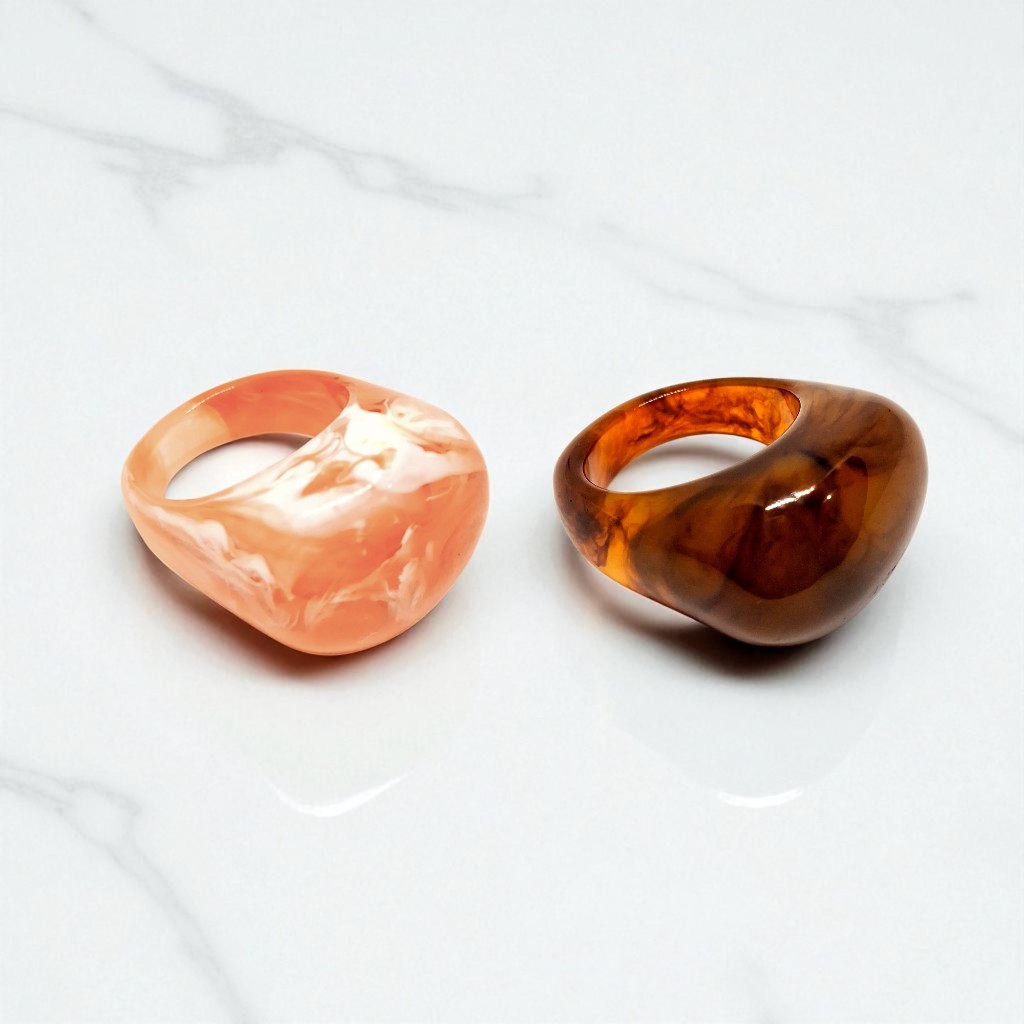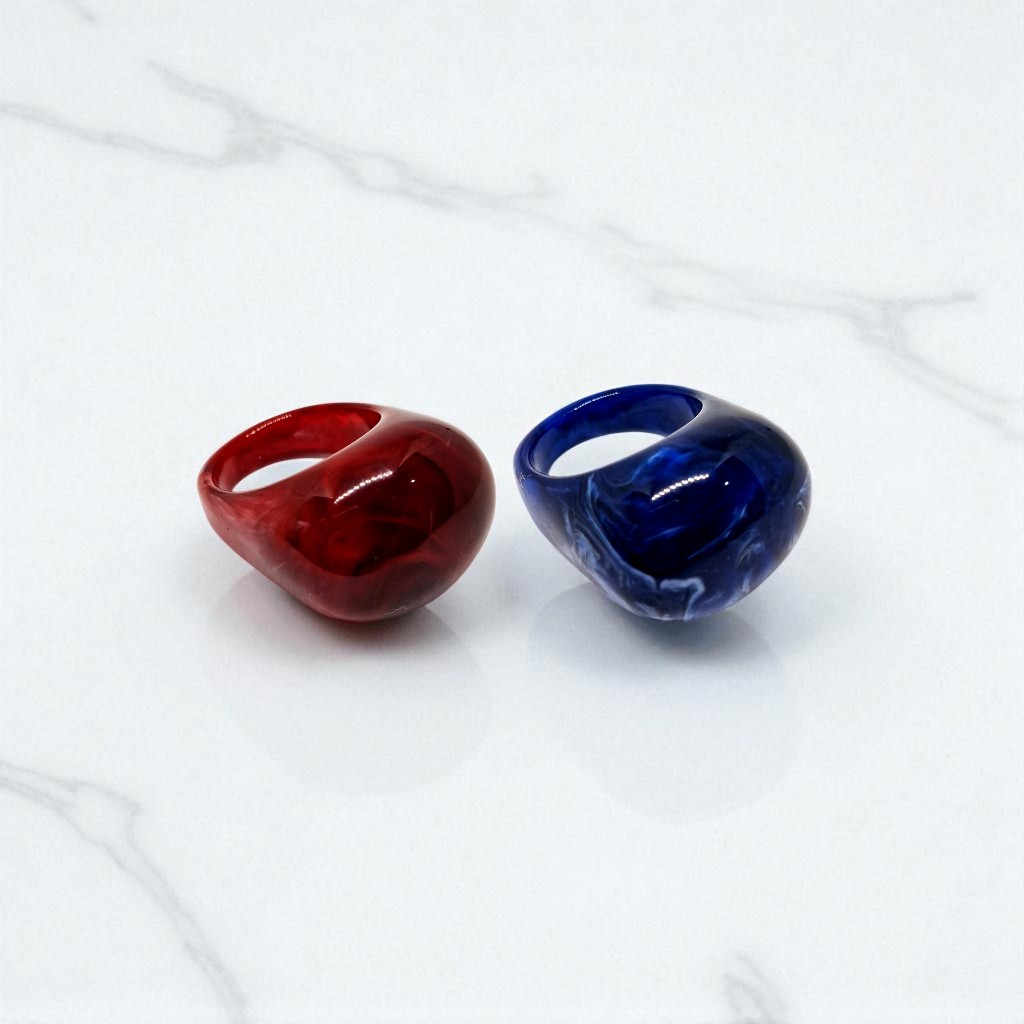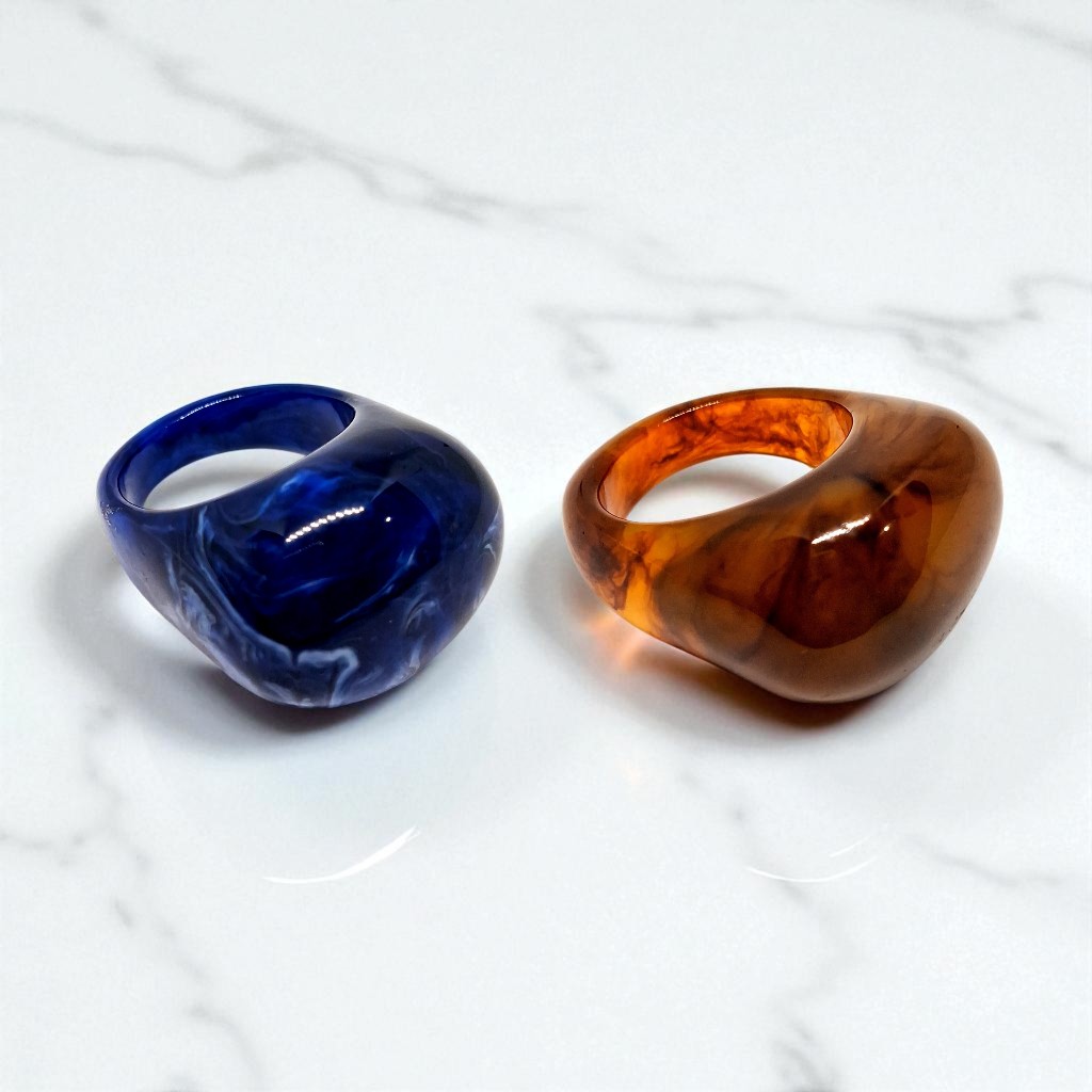 Kit 2 Aneis Resinado Oval Marmorizado Cores