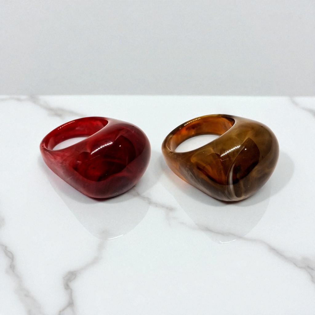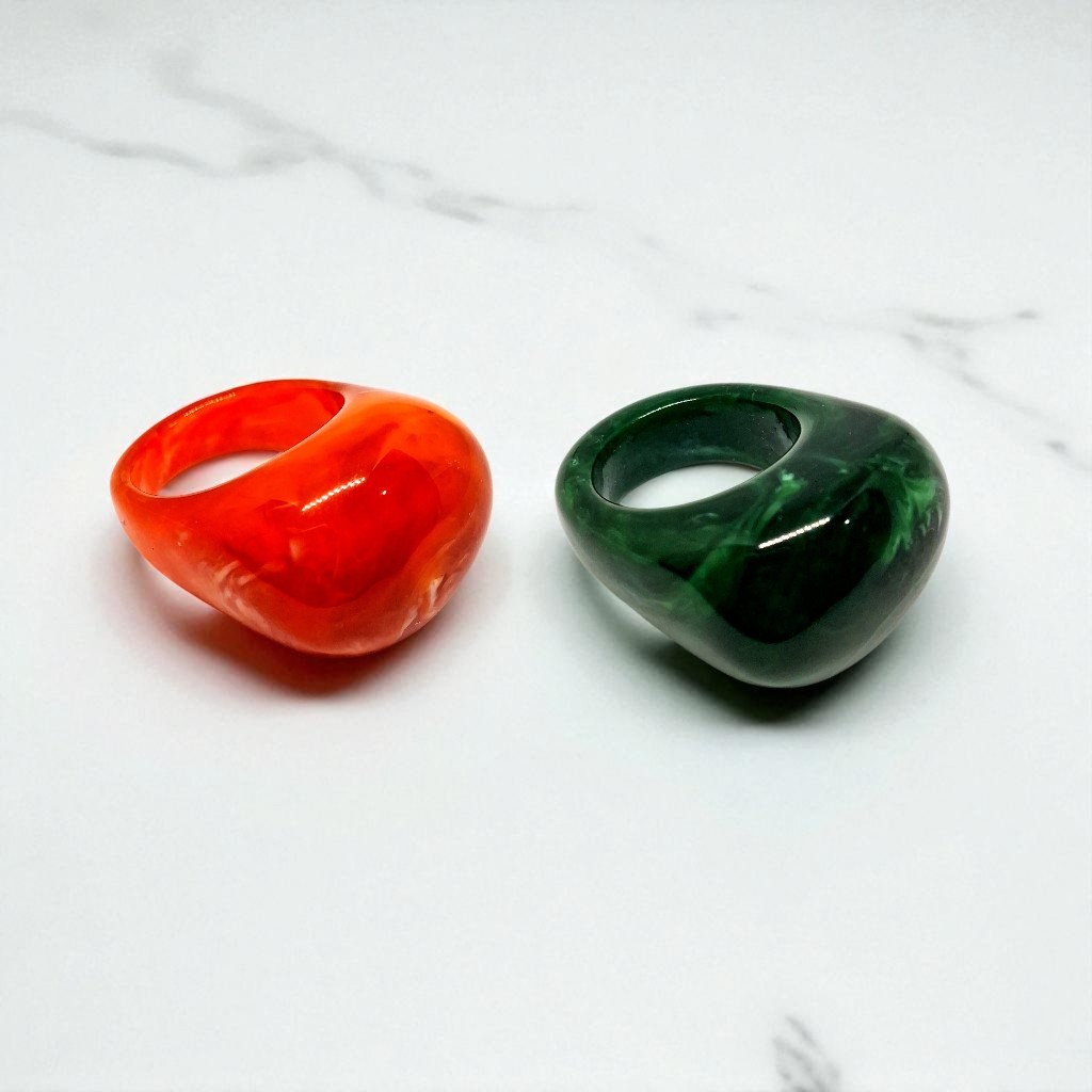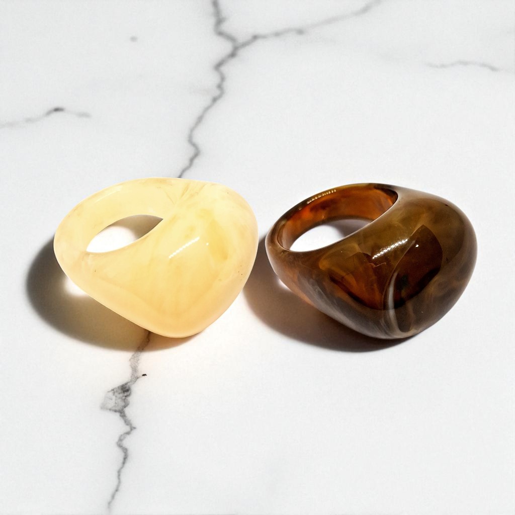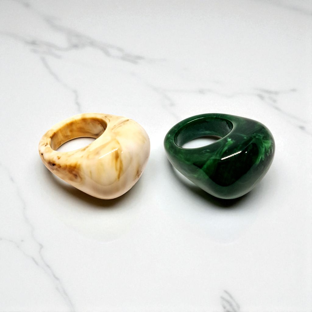 Kit 2 Aneis Resinado Oval Marmorizado Cores