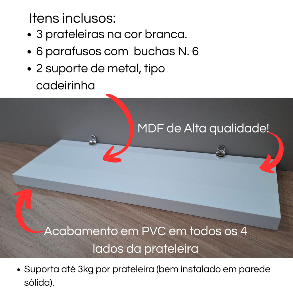 Prateleiras MDF 30cm Parede Organizador Multiuso Decoração Casa Escritório Branco Amadeirado