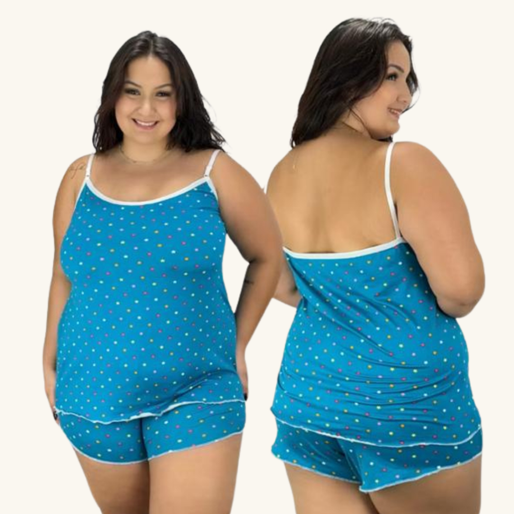 Kit 5 Pijama Plus Size Feminino Soltinho Mulher XGG Larguinho Leve Dia a Dia Short e Blusa Baby Dool Estampado