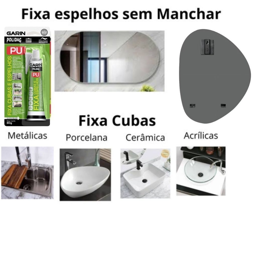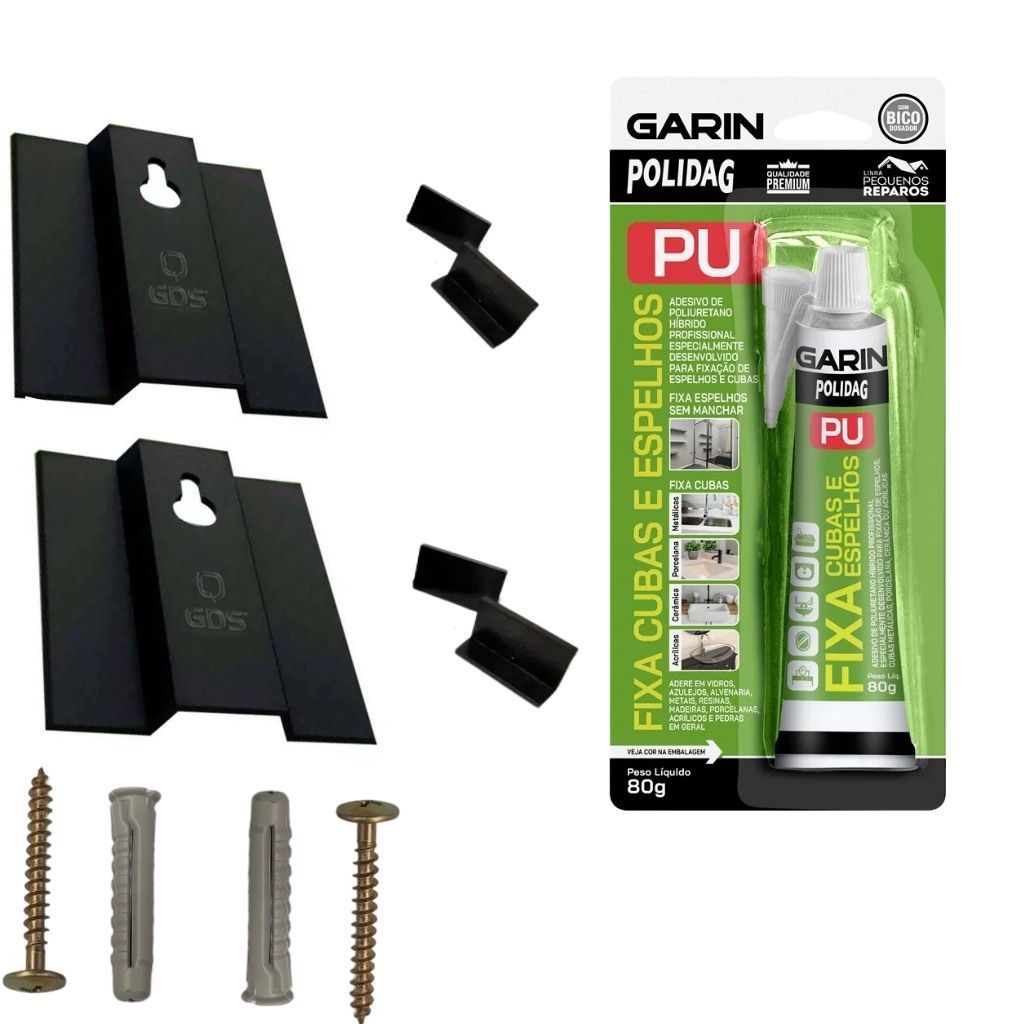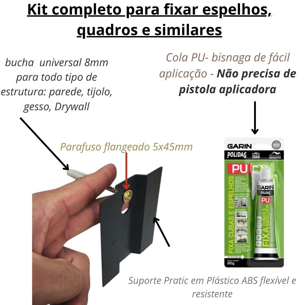 Kit com 2 Suportes Para Espelho com Cola E Parafuso fixa espelho e serve Para Pendurar Quadros e Placas
