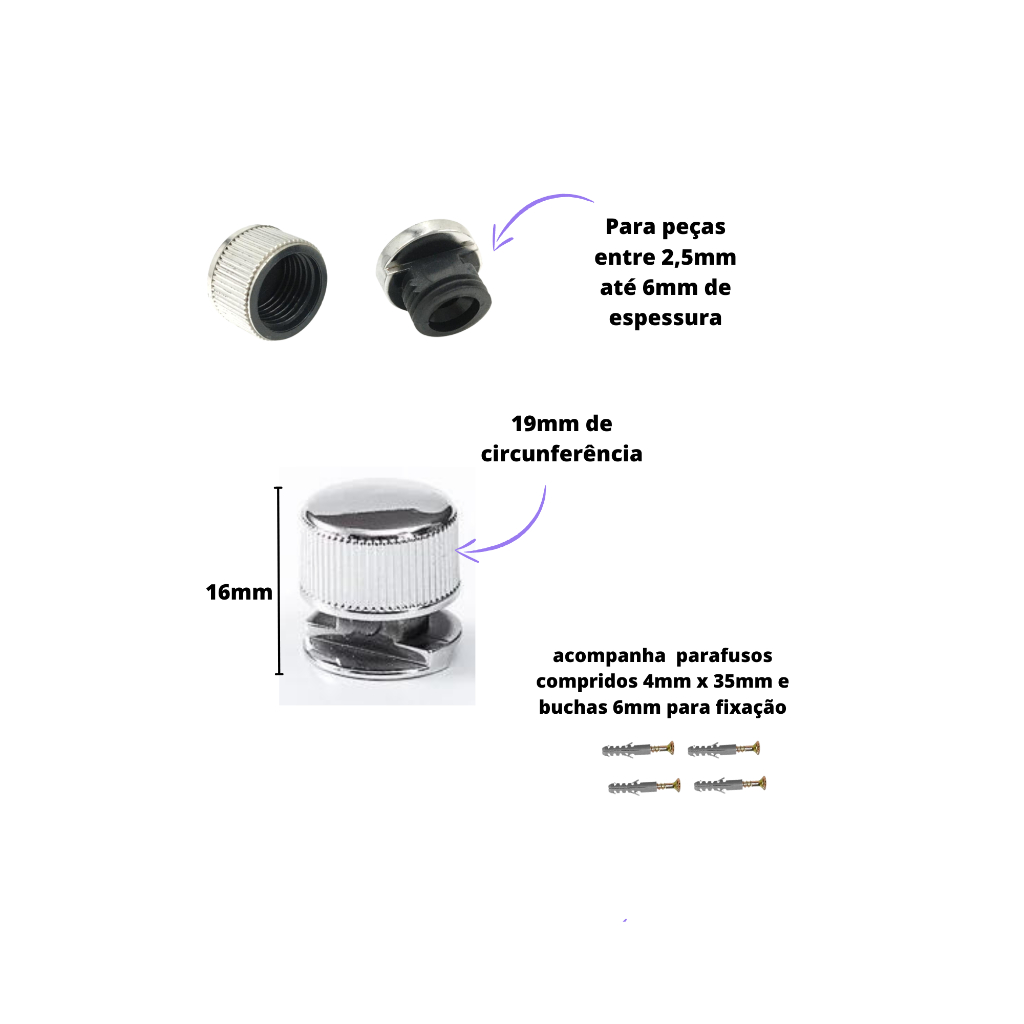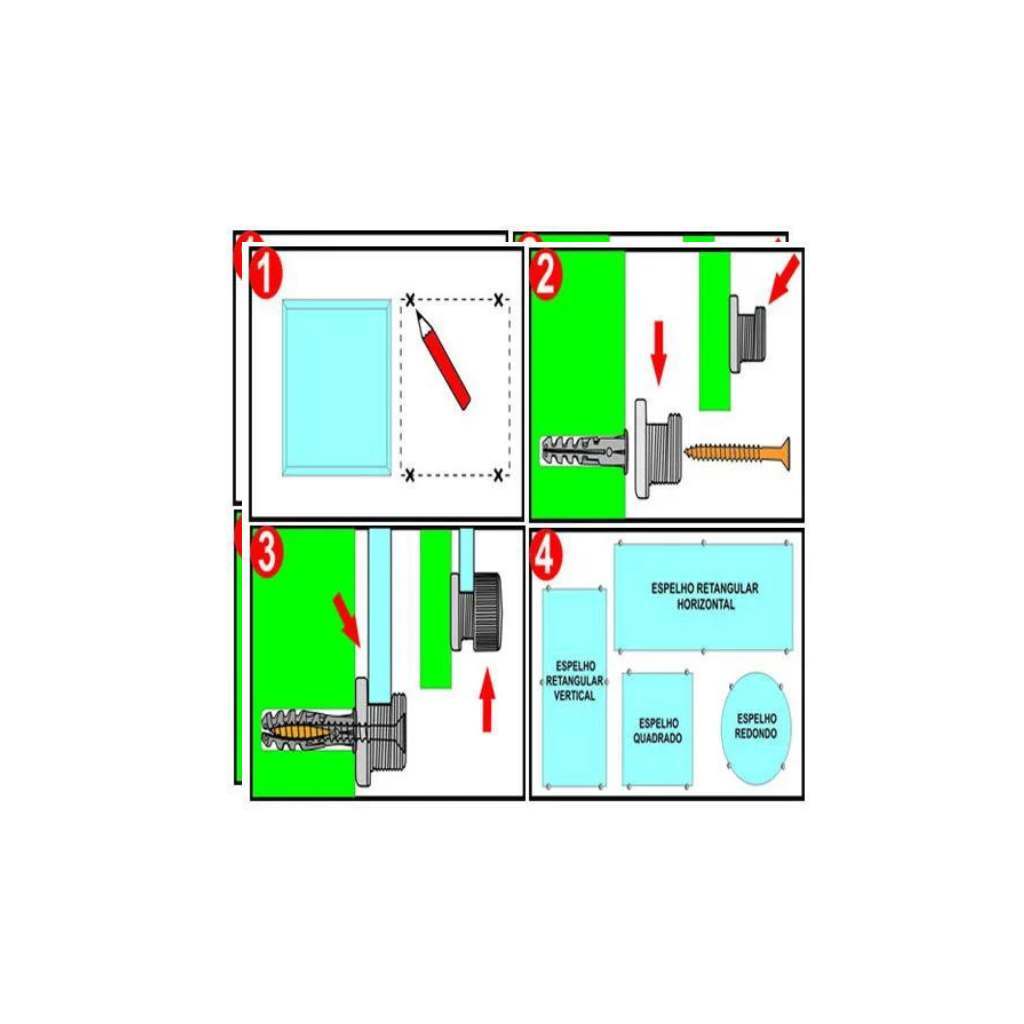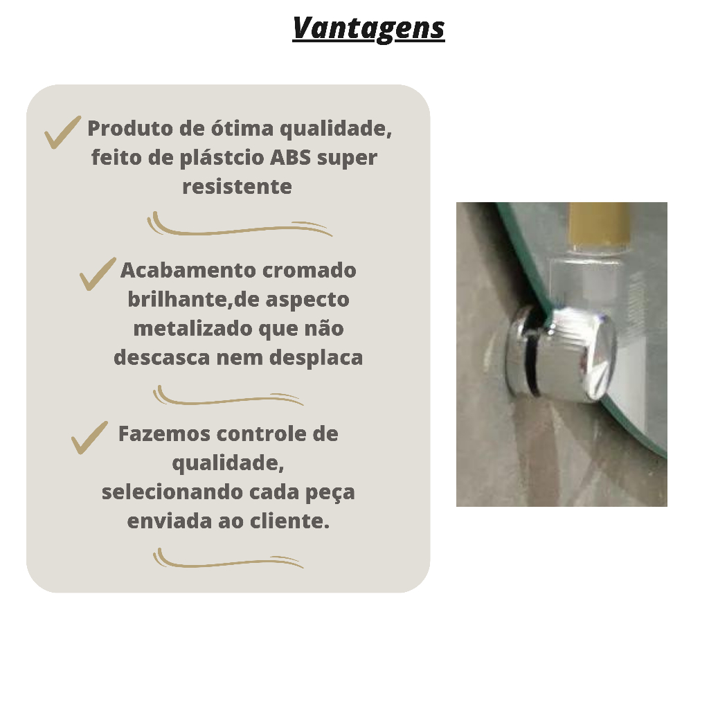 Kit com 12 Botões Francês Suporte Para Espelho Plástico Abs Cromado Metalizado + buchas e parafusos