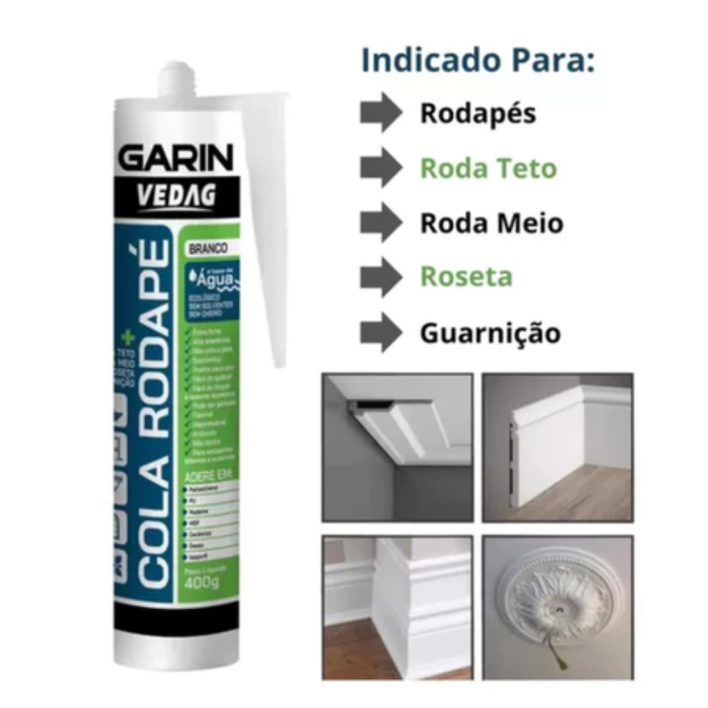 Cola Rodapé 400gr Poliestireno Madeira Gesso Isopor Kit 4 unidades