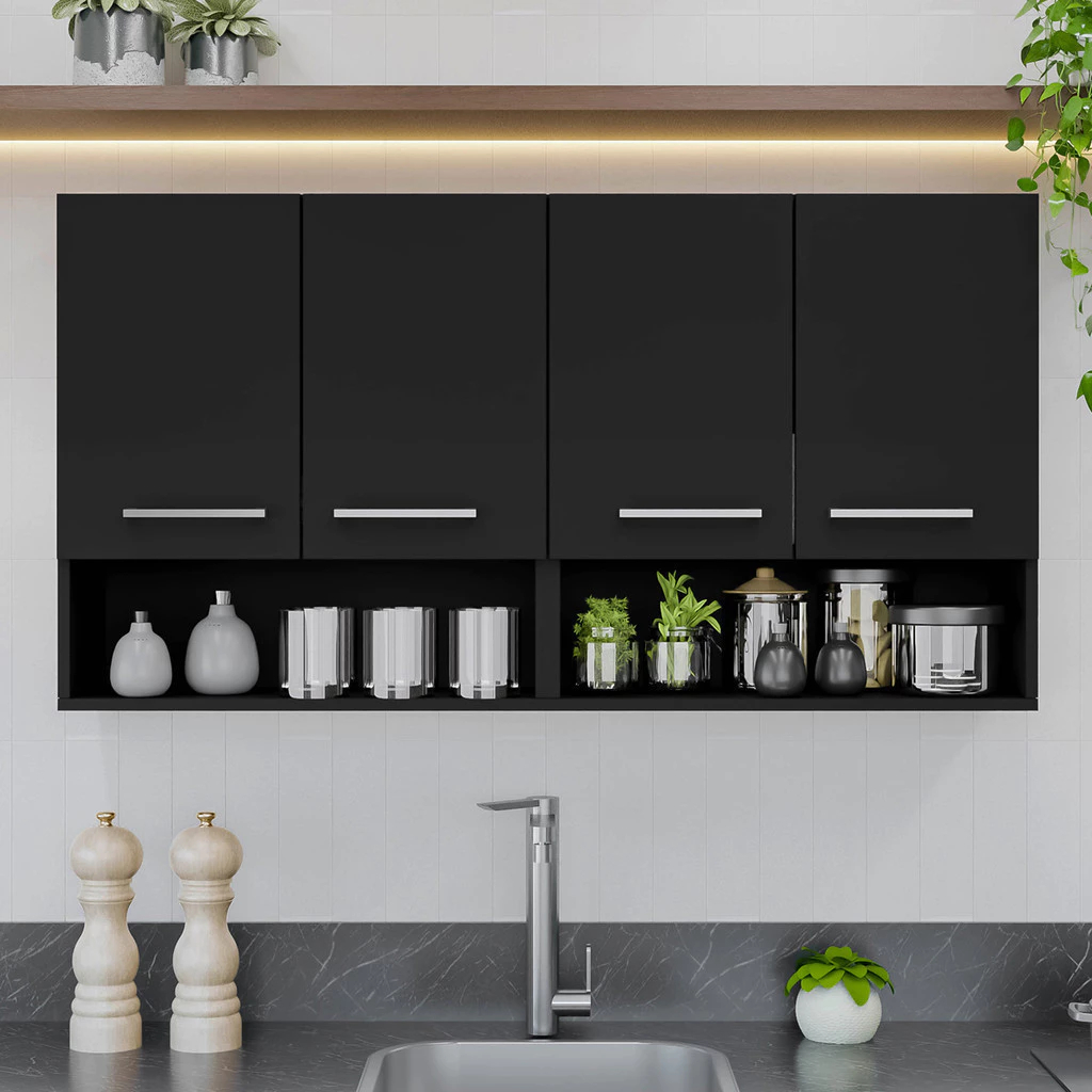 QUEIMA DE ESTOQUE - Armário Cozinha Aéreo Multiuso de 3 ou 4 Portas e Nicho