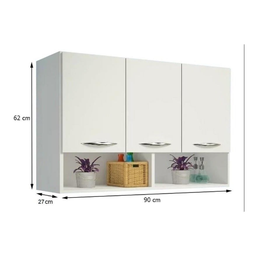 Armário Branco 2 ou 3 Portas Com Nicho Cozinha, Lavanderia, Multiuso