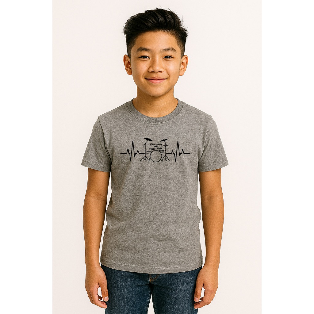 Camiseta infantil menino menina batimento cardíaco bateria baterista musico