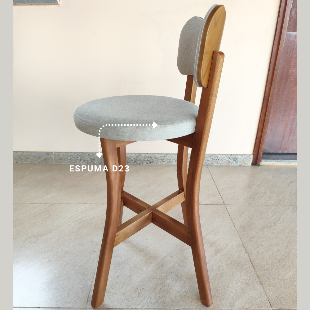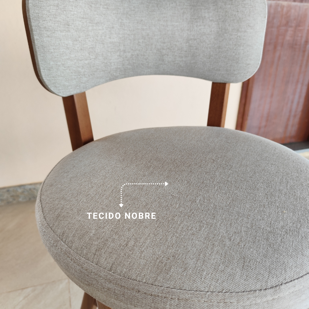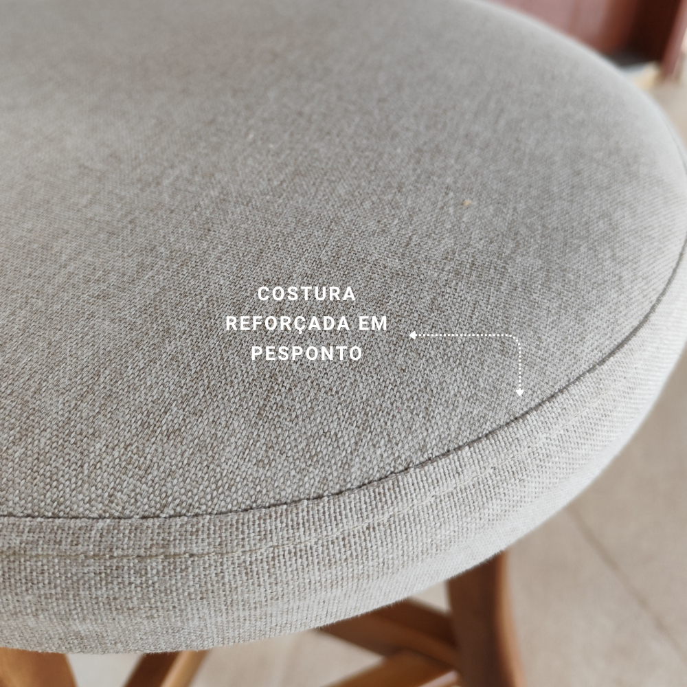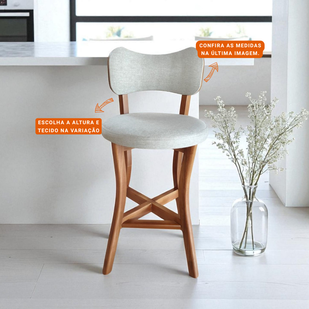 Banqueta alta balcão cozinha com Encosto Linho Bege 2 unidades Madeira Maciça Estofado Premium