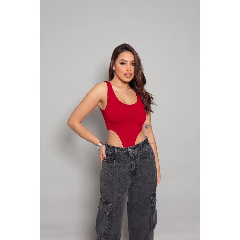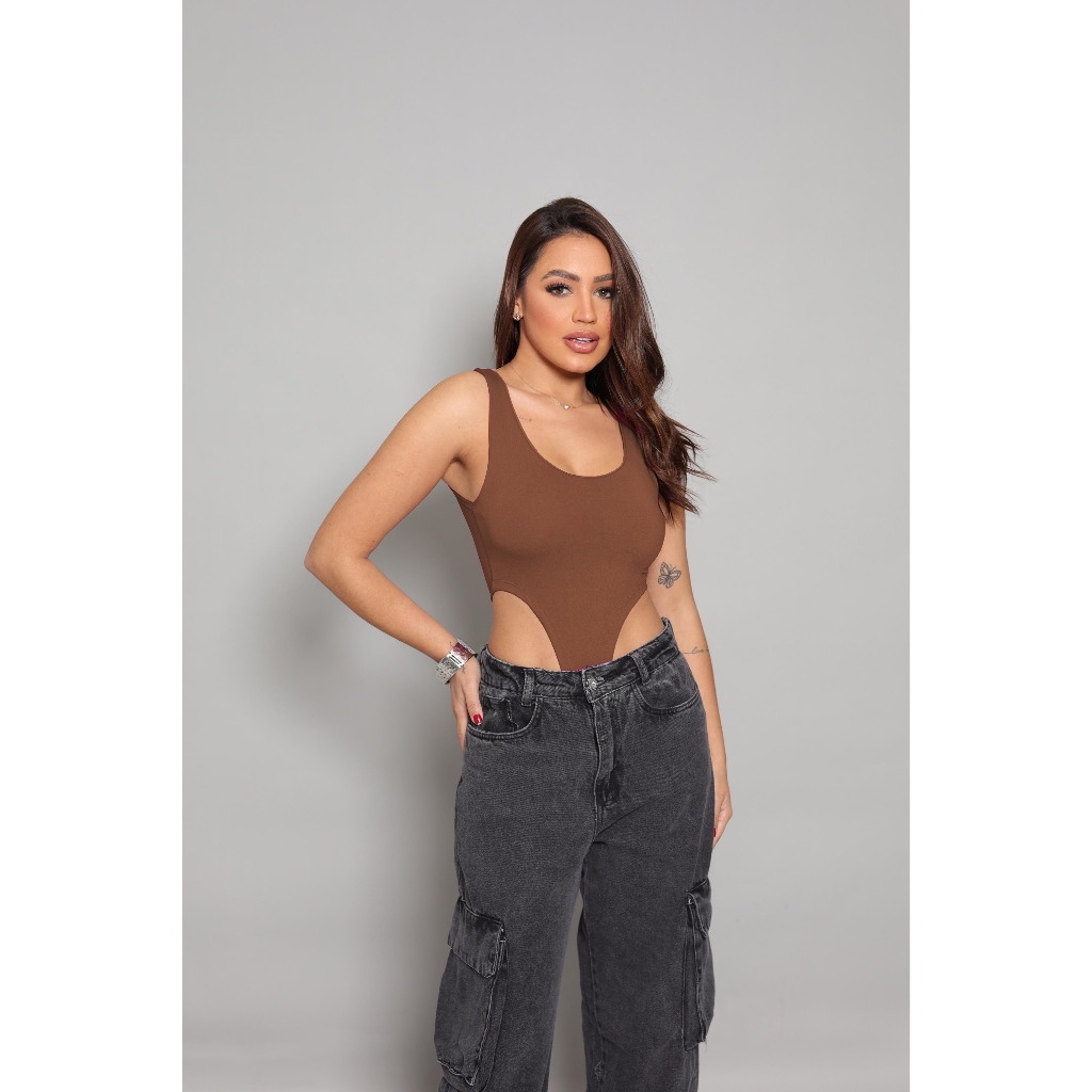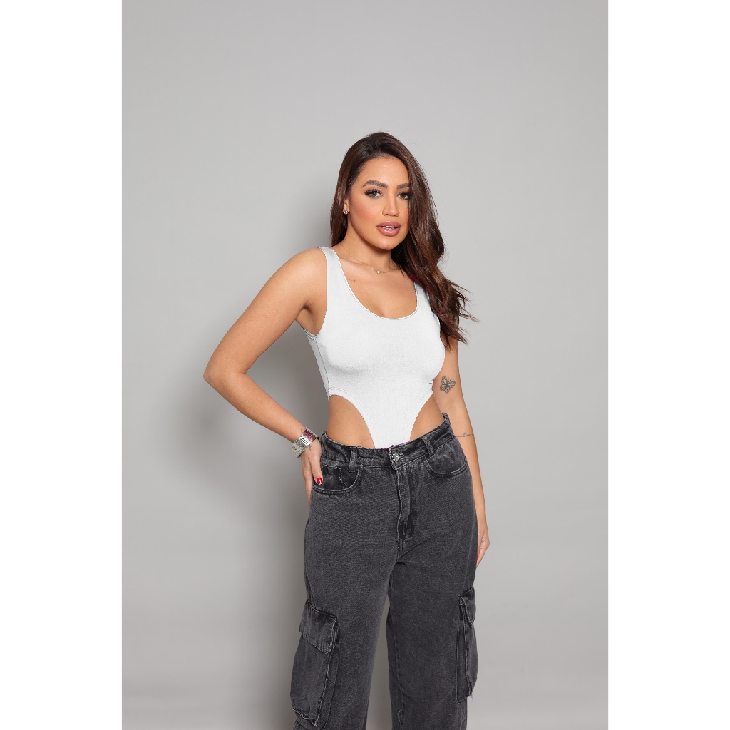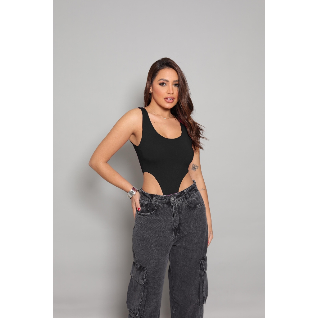 Body Cavado Justo Feminino Canelado Moda Balada Fashion