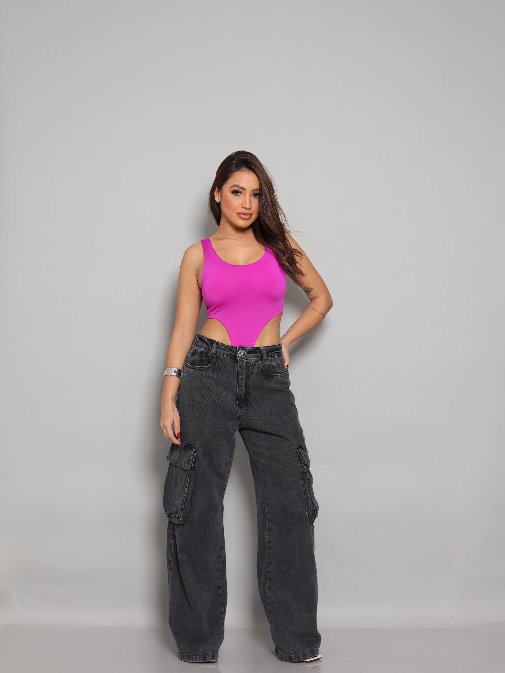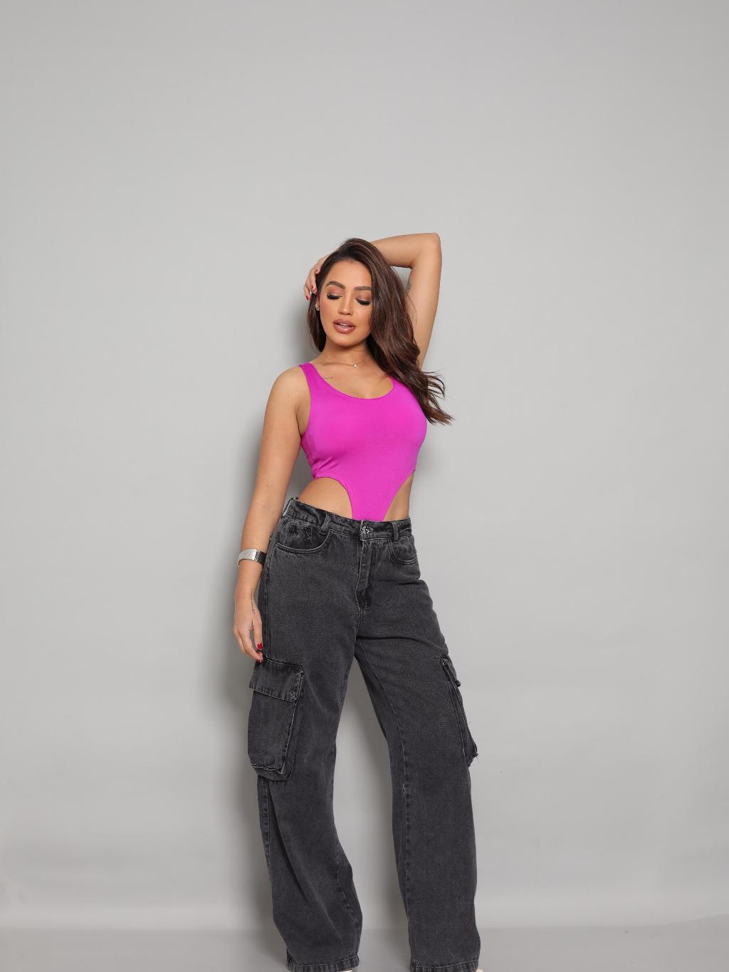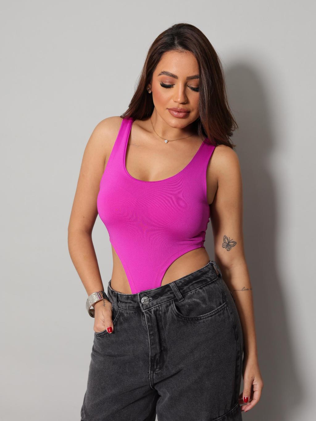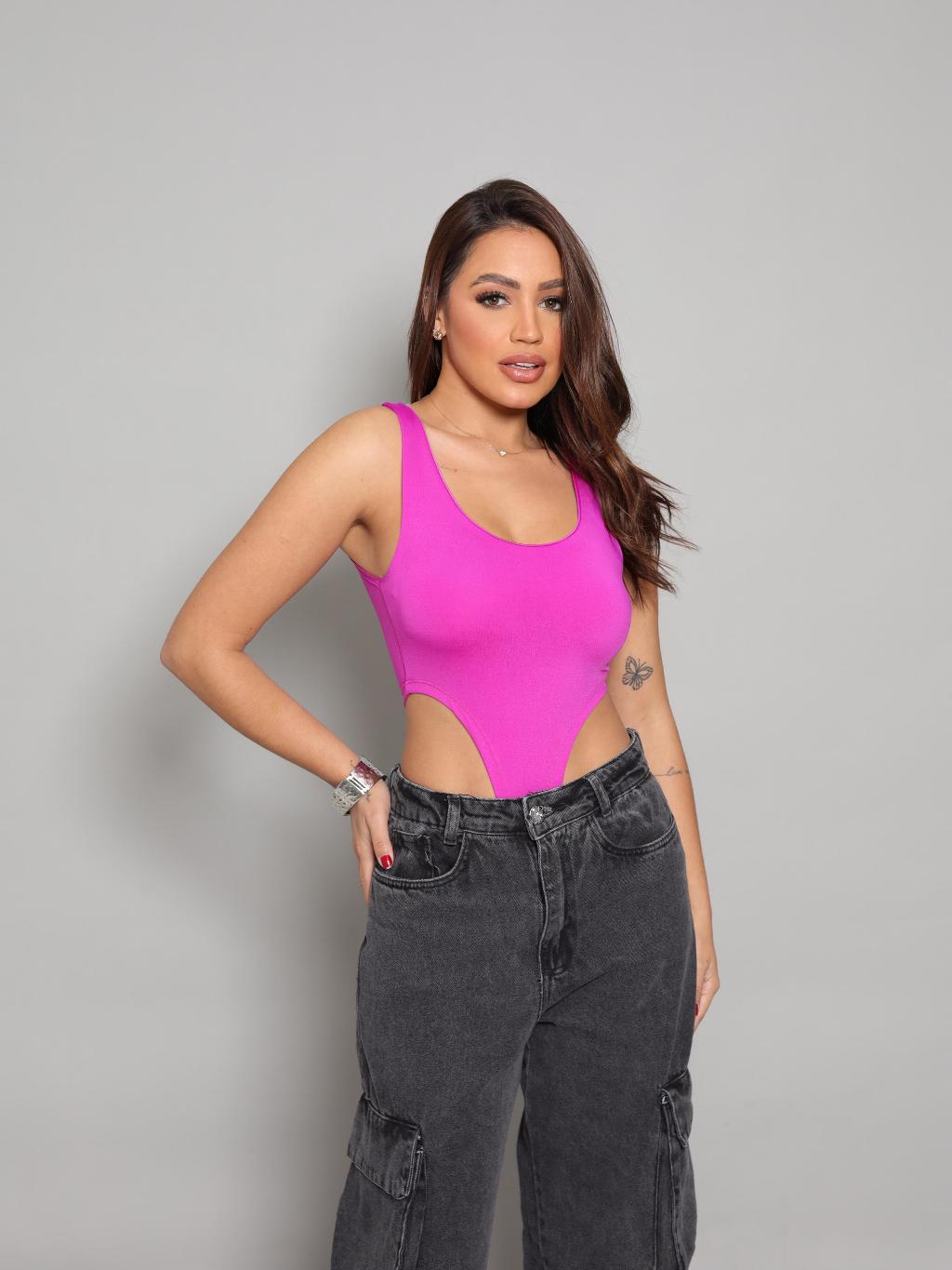 Body Cavado Justo Feminino Canelado Moda Balada Fashion