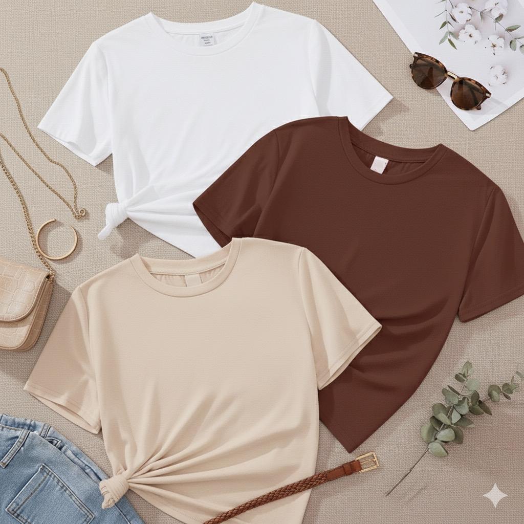 Kit 3 Camiseta Feminina Básica T-Shirt 100% Algodão Tendência Envio Imediato