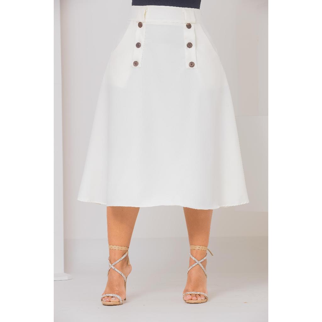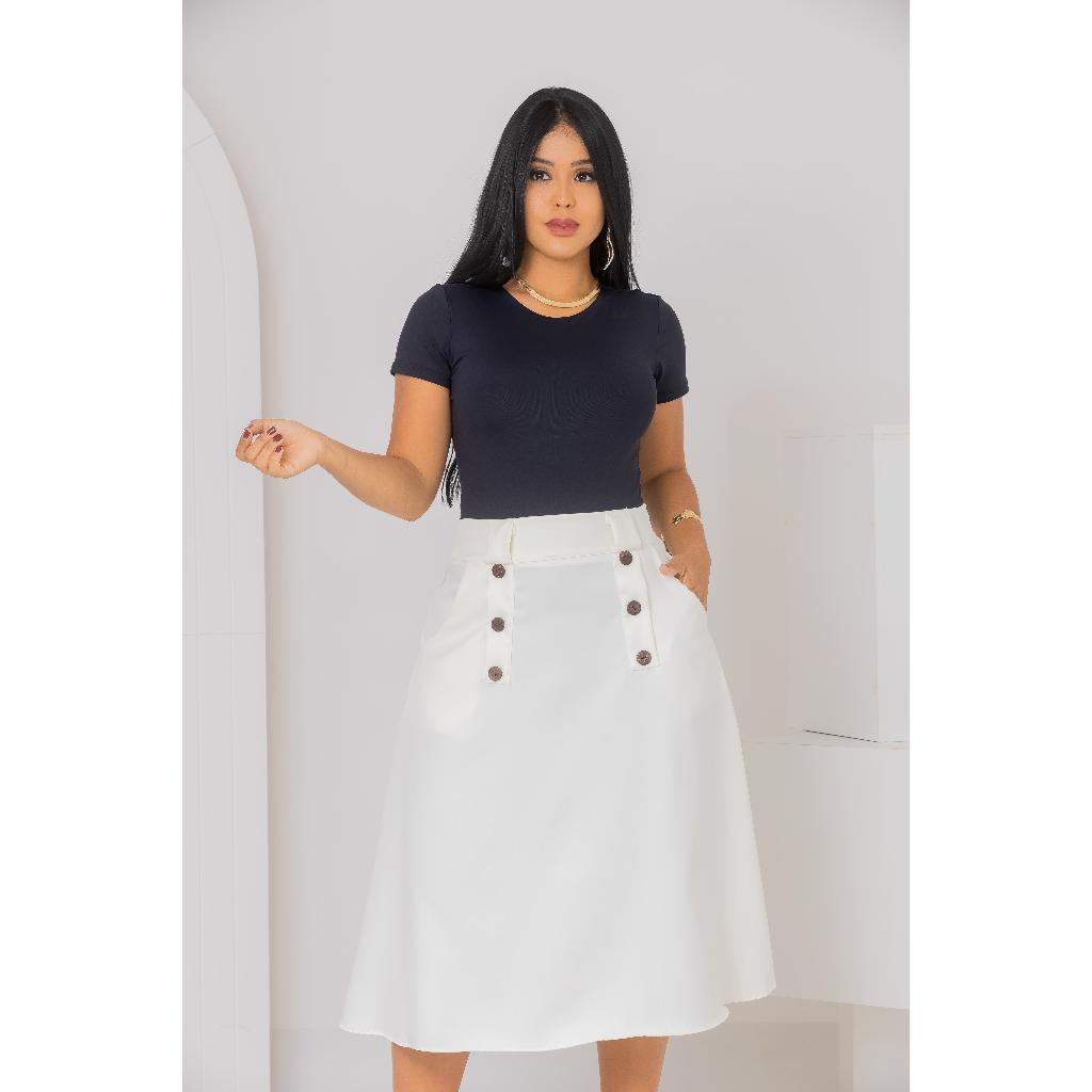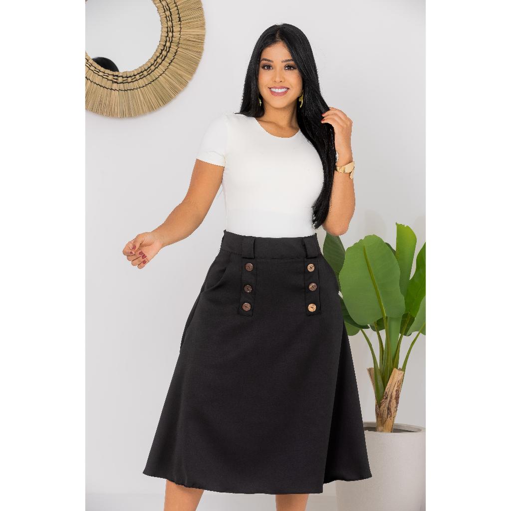 Saia Midi Alfaiataria Botões Moderna Chique
