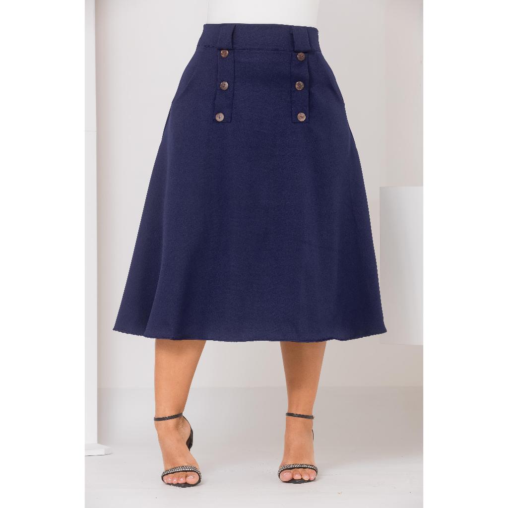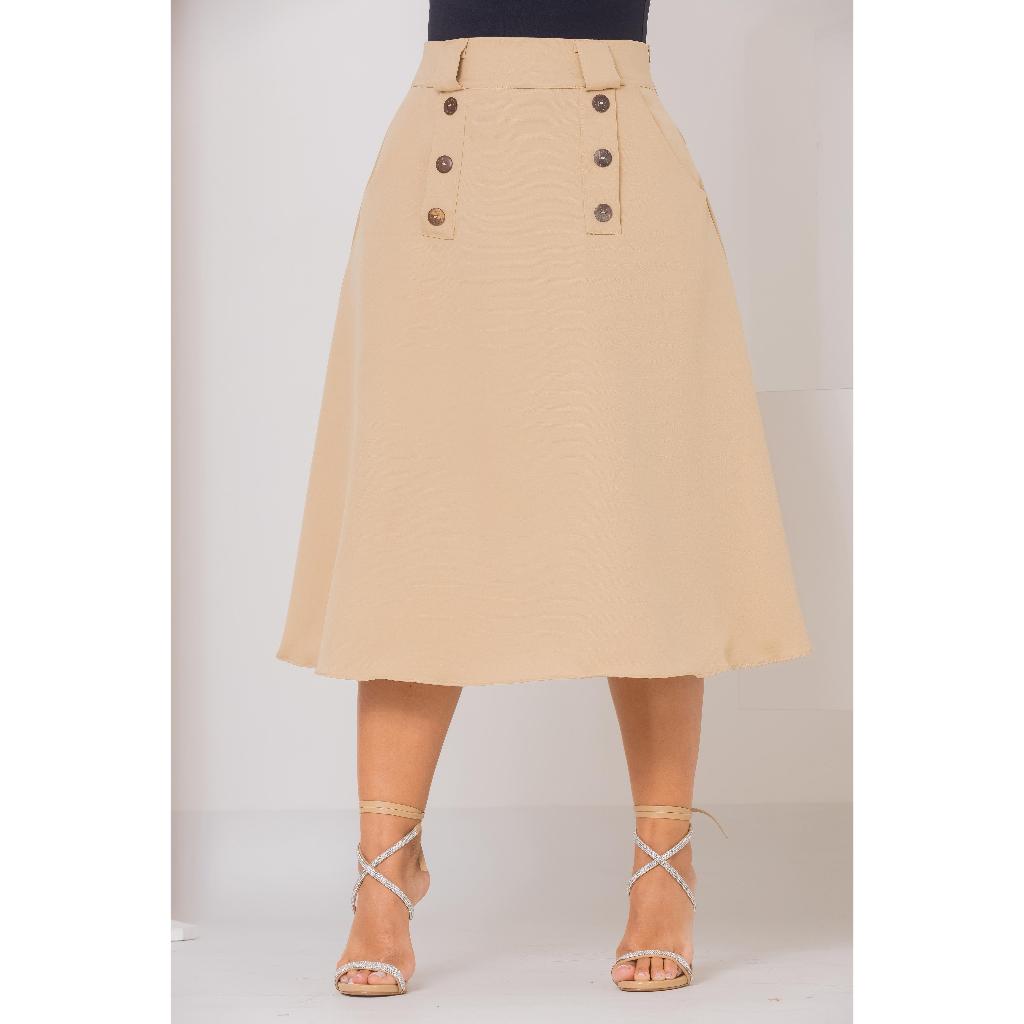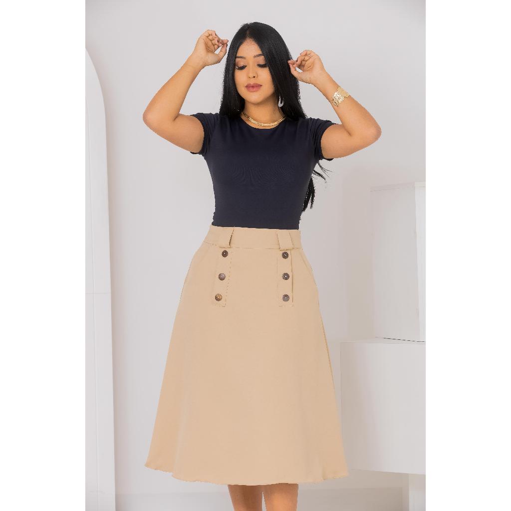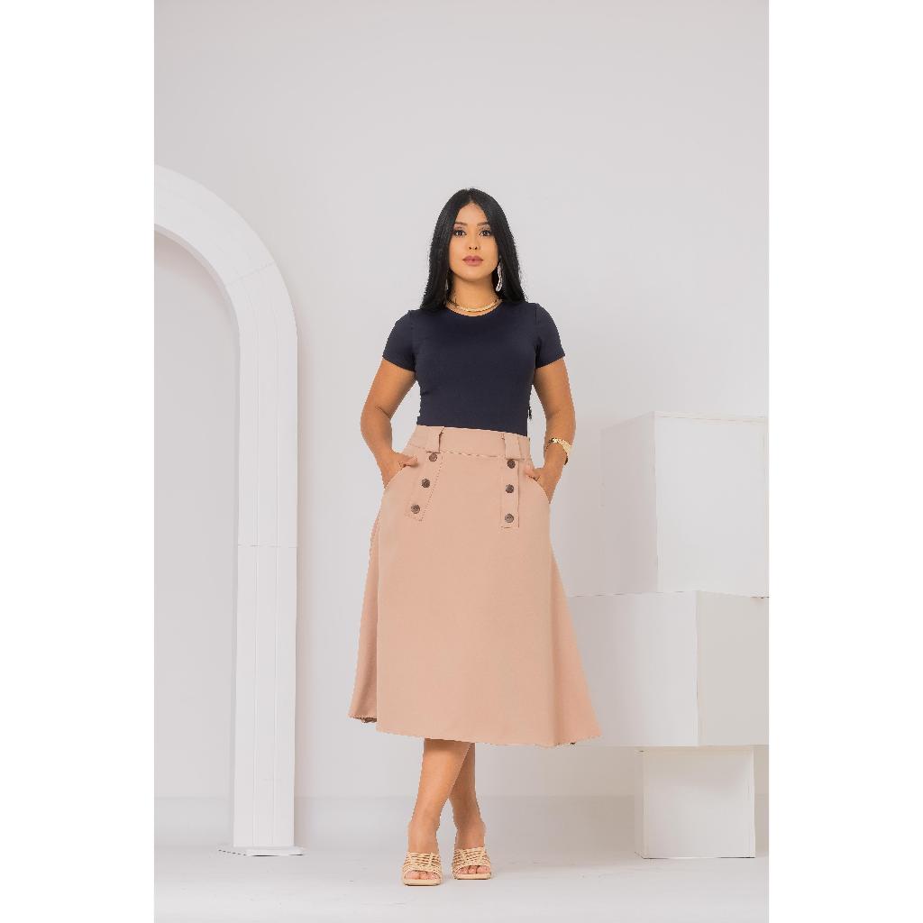 Saia Midi Alfaiataria Botões Moderna Chique
