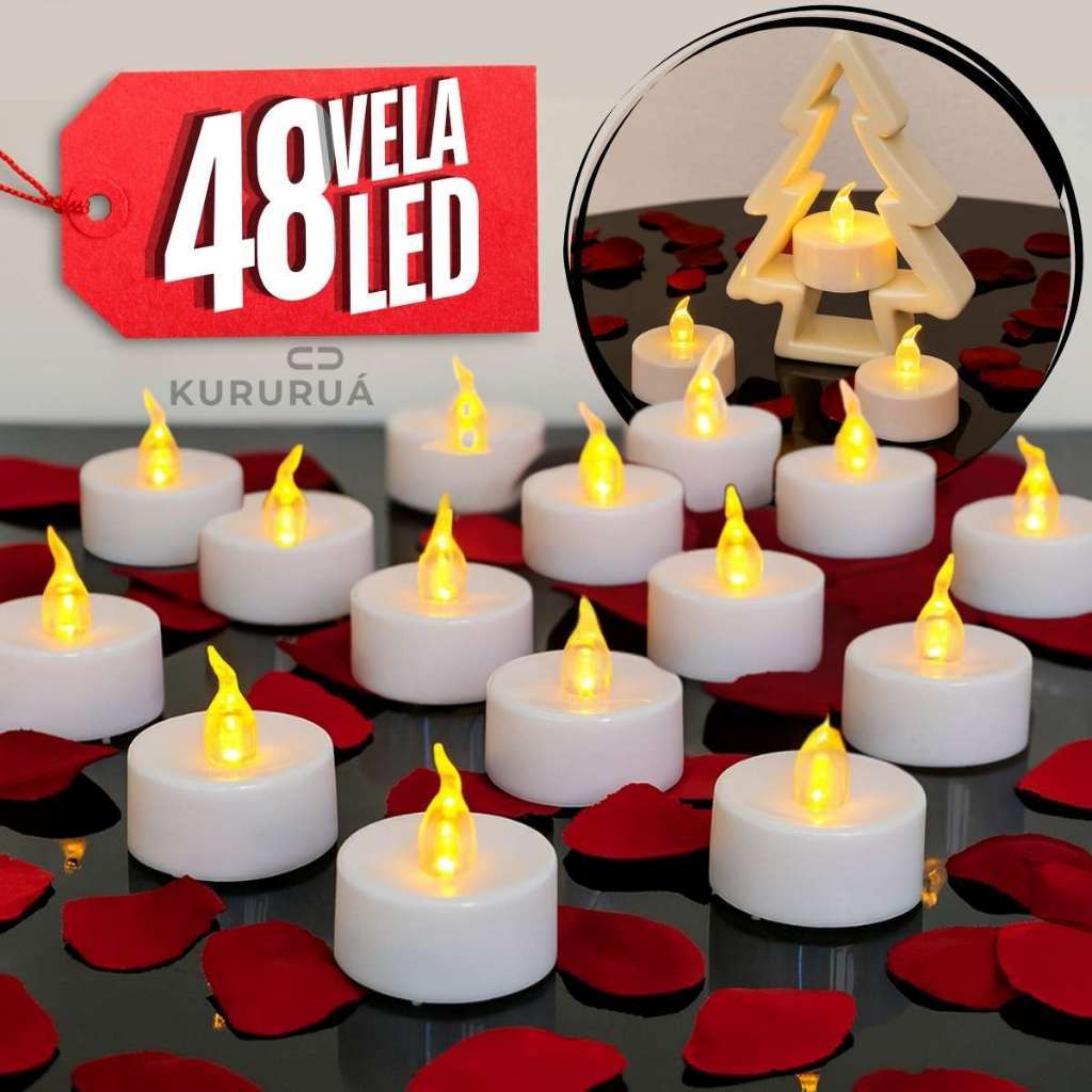 Kit 48, 24, 12 e 10 Vela Led Decorativa E Bateria Surpresa Romantica Dia Dos Namorados
