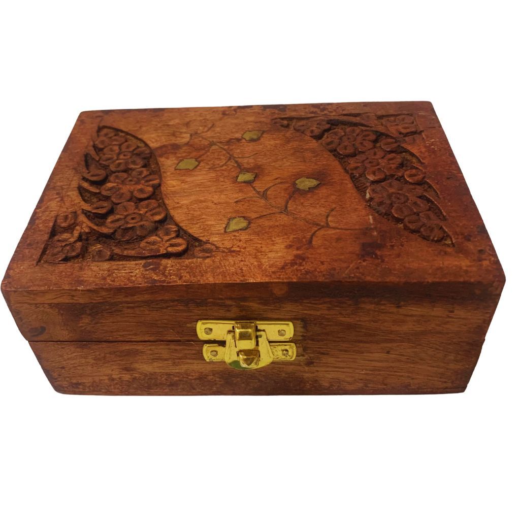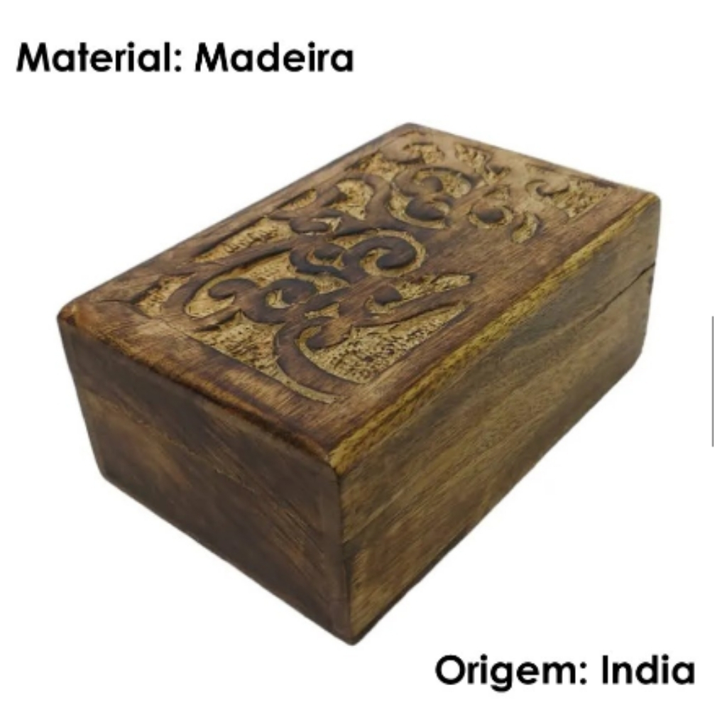Baú Indiano de Madeira Rústica Escura Caixa Decorativa Mdf para Armazenar Tarot / Cartas / Baralho / Jóias