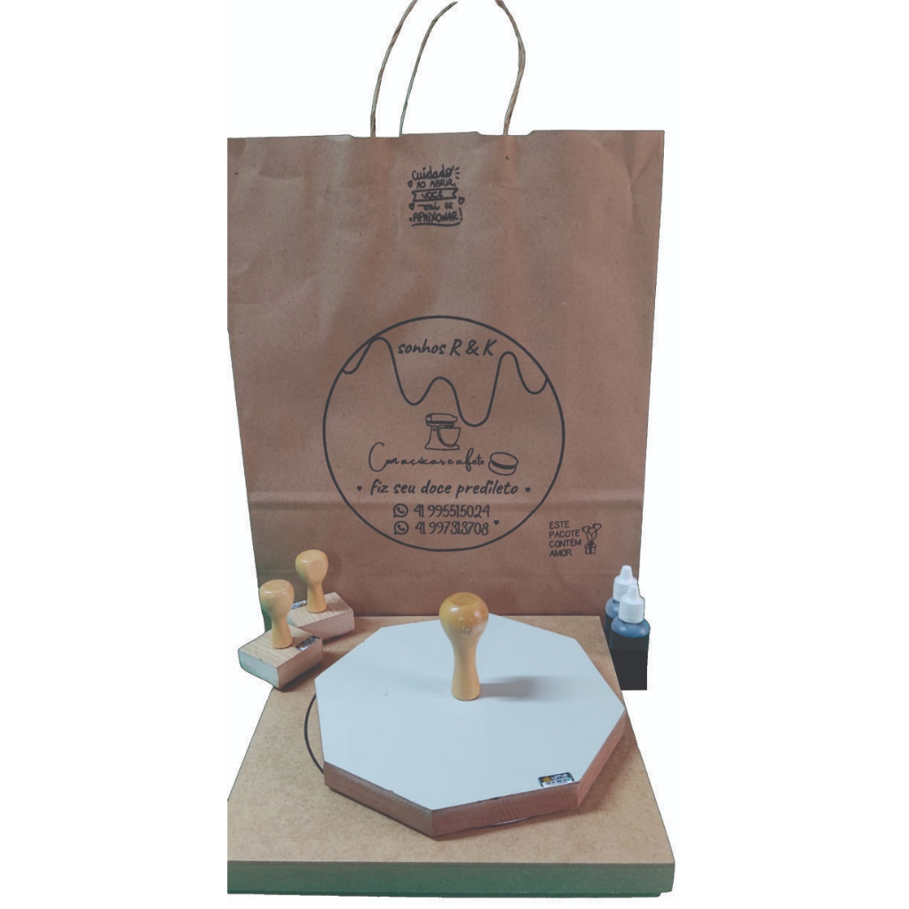 Kit Carimbos 20x20 + 2 5x5 + almofada + 02 tintas