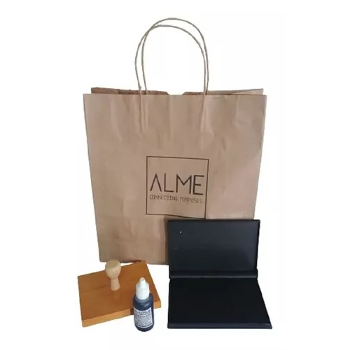 Kit Carimbos Madeira Personalizados 1un 12x12cm + 1un 6x6cm + almofada + tinta Para Sacolas Kraft