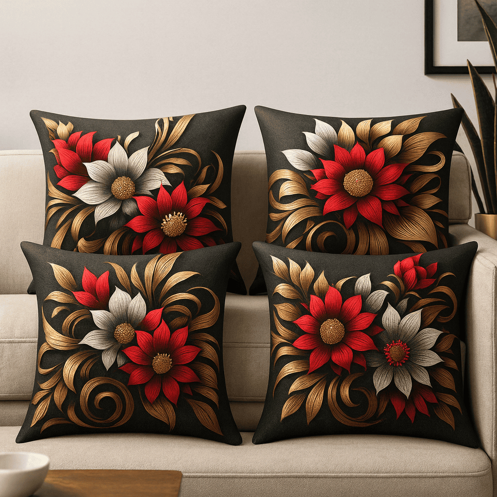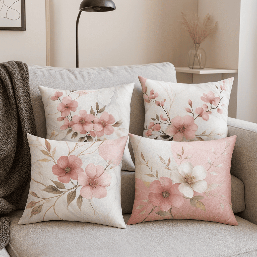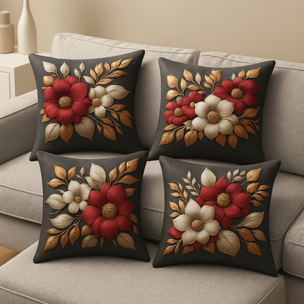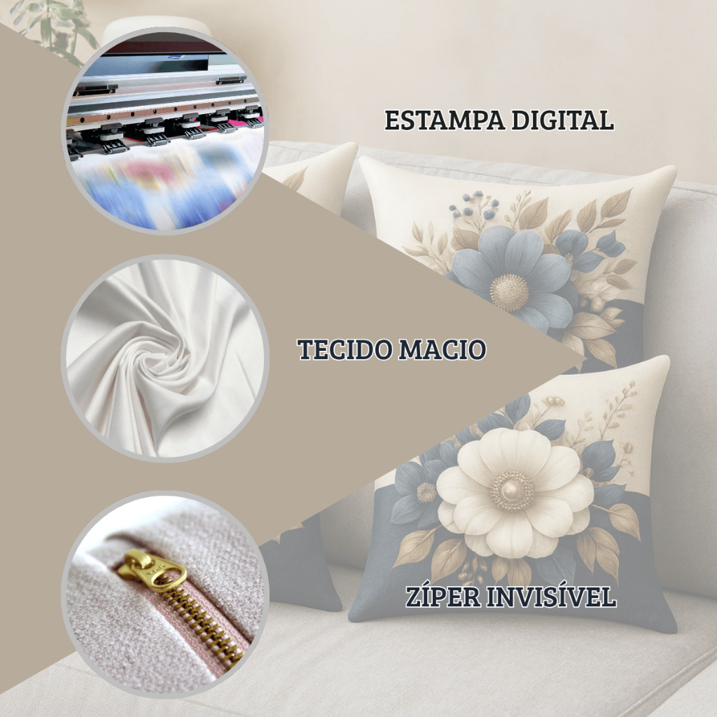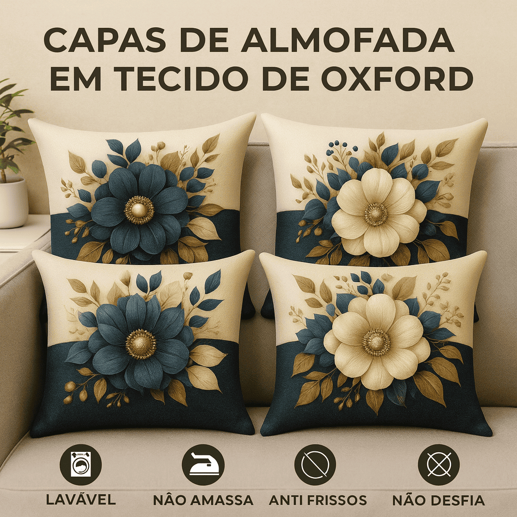 kit com 4 capas para almofada estampas flores variadas lançamento 45x45