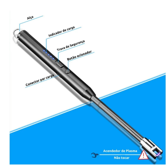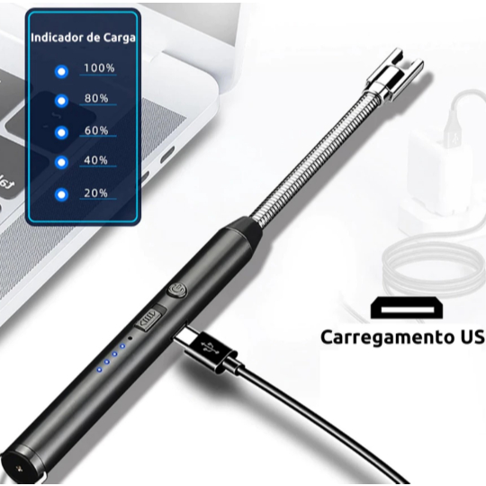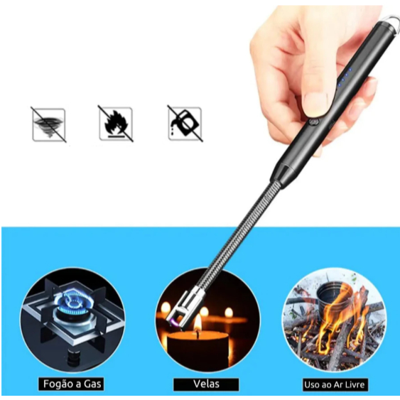 Isqueiro Eletrico Acendedor De Fogão Churrasqueira Vela com Recarga USB