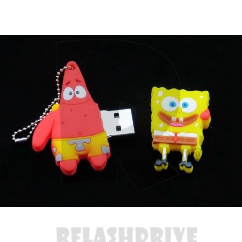 Silicone Bob Esponja Calça Quadrada Big Star Creative Flash Drive USB 2.0 2 Tb 128 Gb 64 32 16 8 4 2 1 Armazenamento De Dados Memory Stick Em Estoque