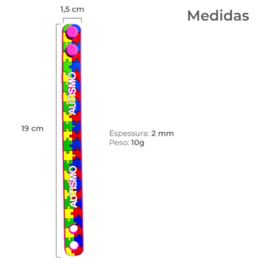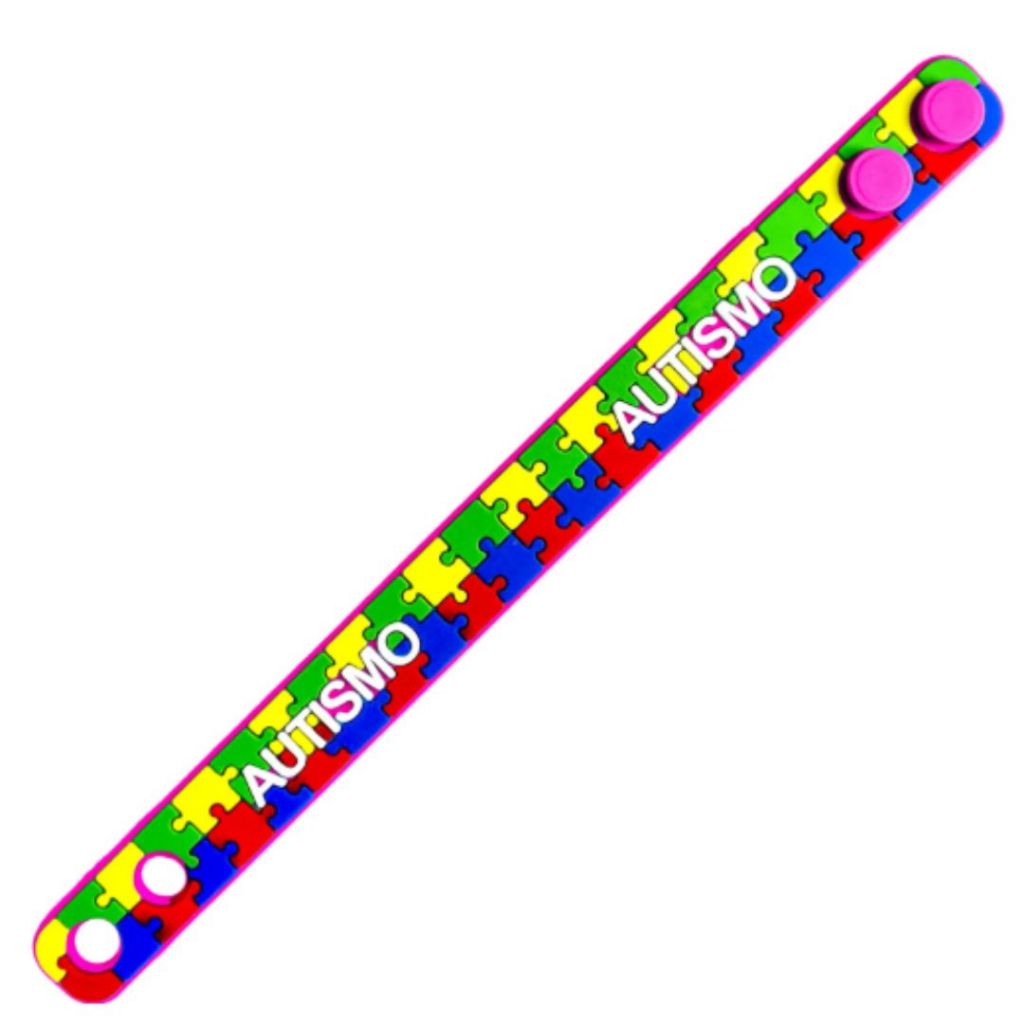 Pulseira De Identificação Autista Silicone Infantil Autismo Rosa
