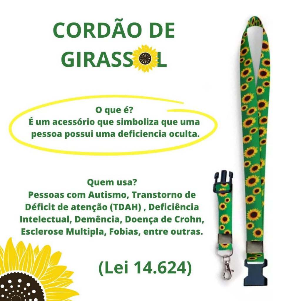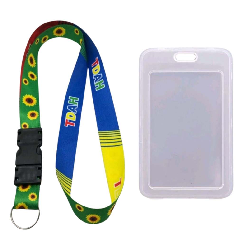 Chaveiro Cordão Dupla Face Girassol E Tdah + Porta Cracha