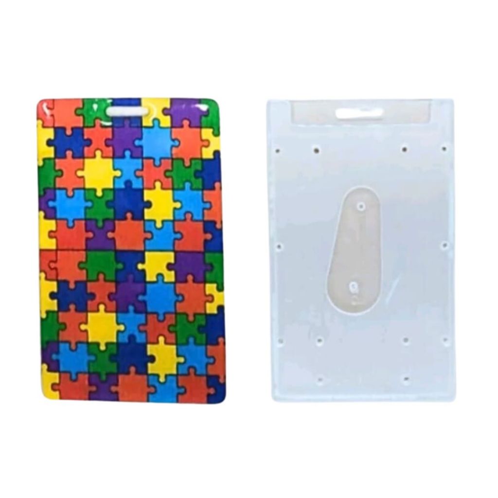 Kit Cordão + Porta Crachá Cartão Rigido Quebra Cabeça Autismo