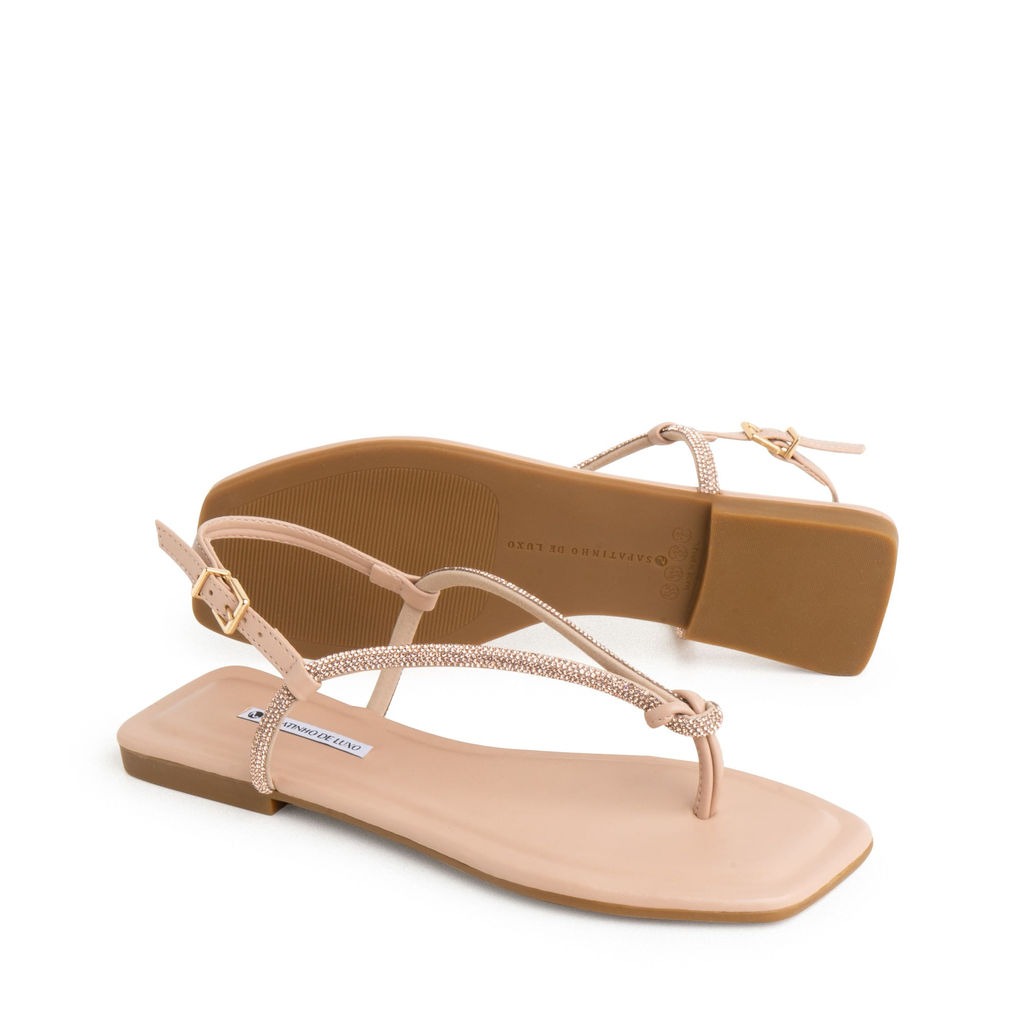 Rasteira Sandália Nude Amendoa Tira Dedo Nó com Strass Brilho e Fivela 1380.308_5