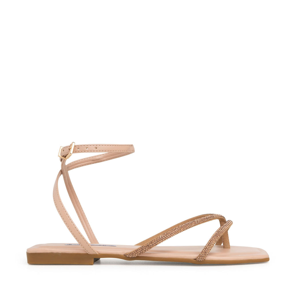 Rasteira Sandália Nude Amendoa Tira Strass Brilho e Fivela ouro 1380.307_2