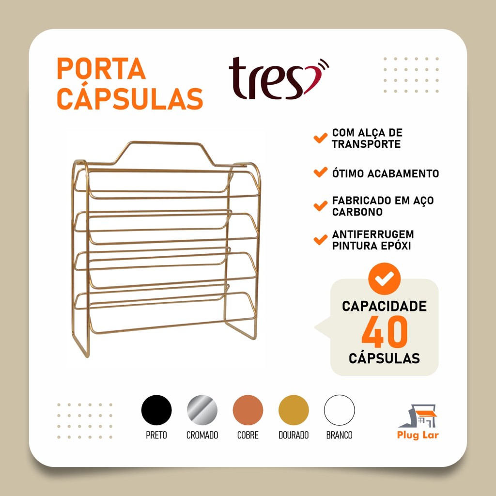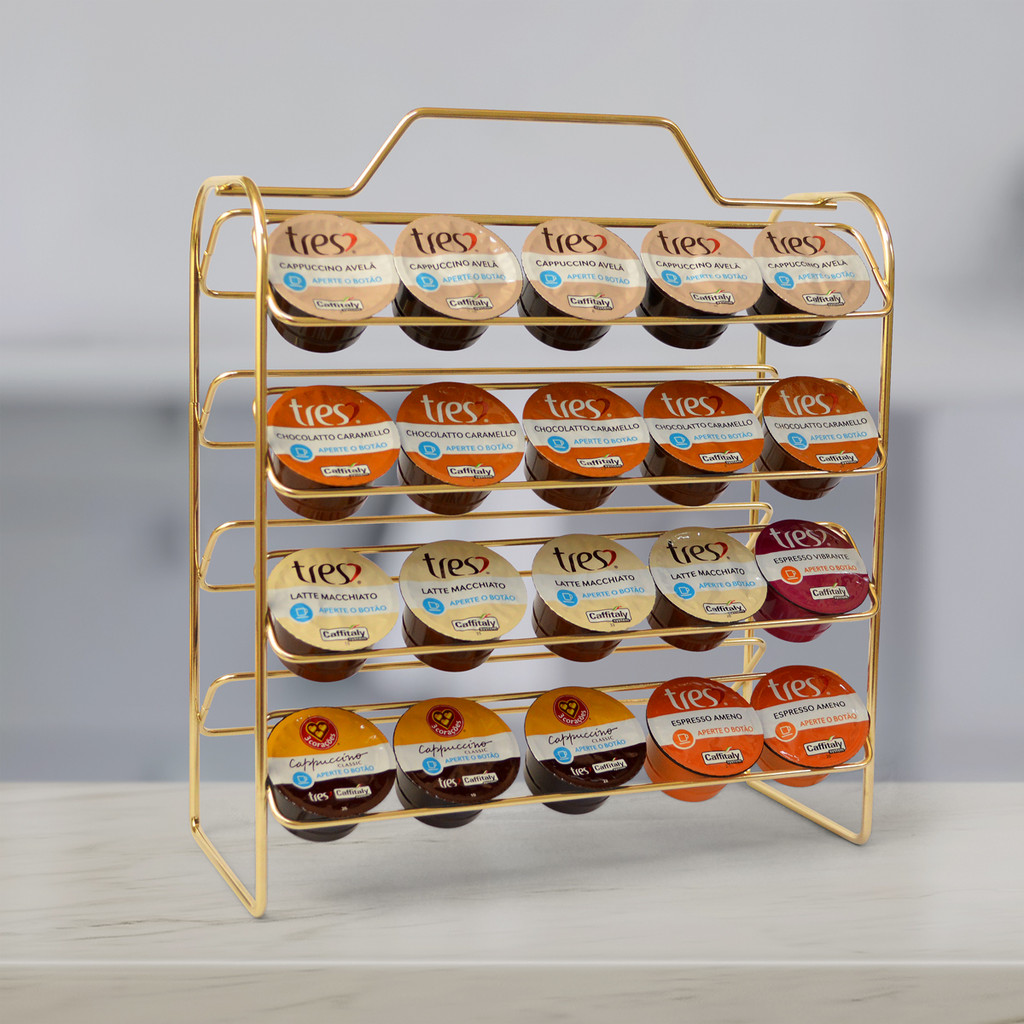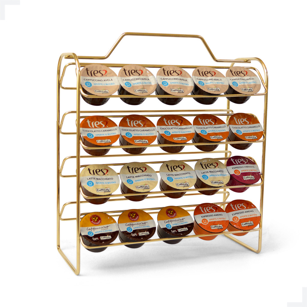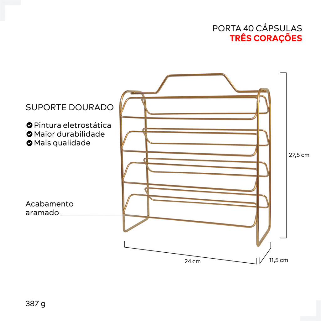 Suporte Porta Cápsulas 3 Corações 40 Unidades Dourado para Cantinho do Café