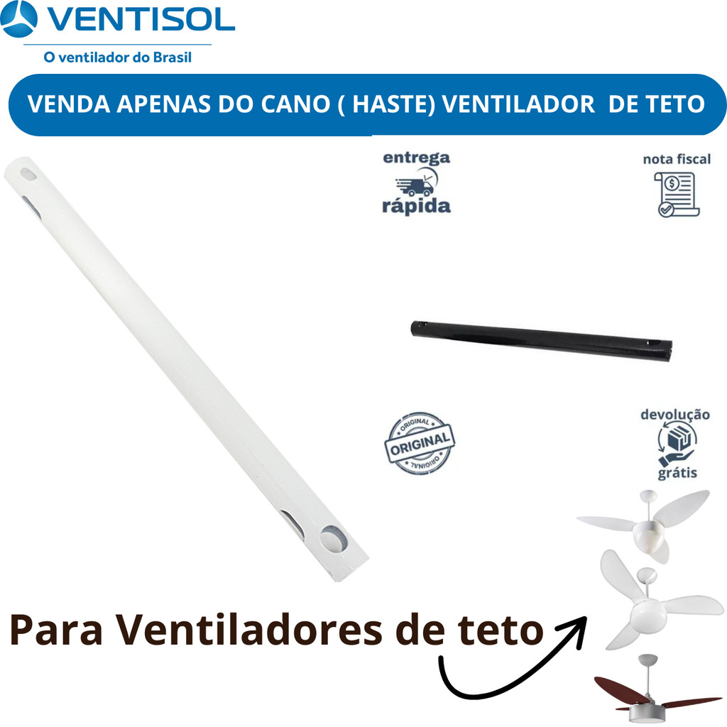 Cano Haste de Ferro Ventilador de Teto Ventisol - Caninho Tubo Prolongador Reposição