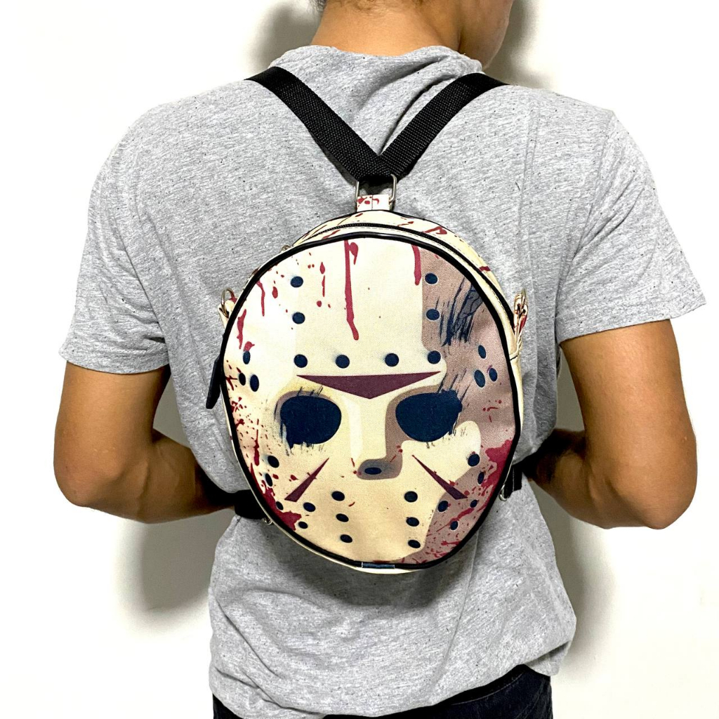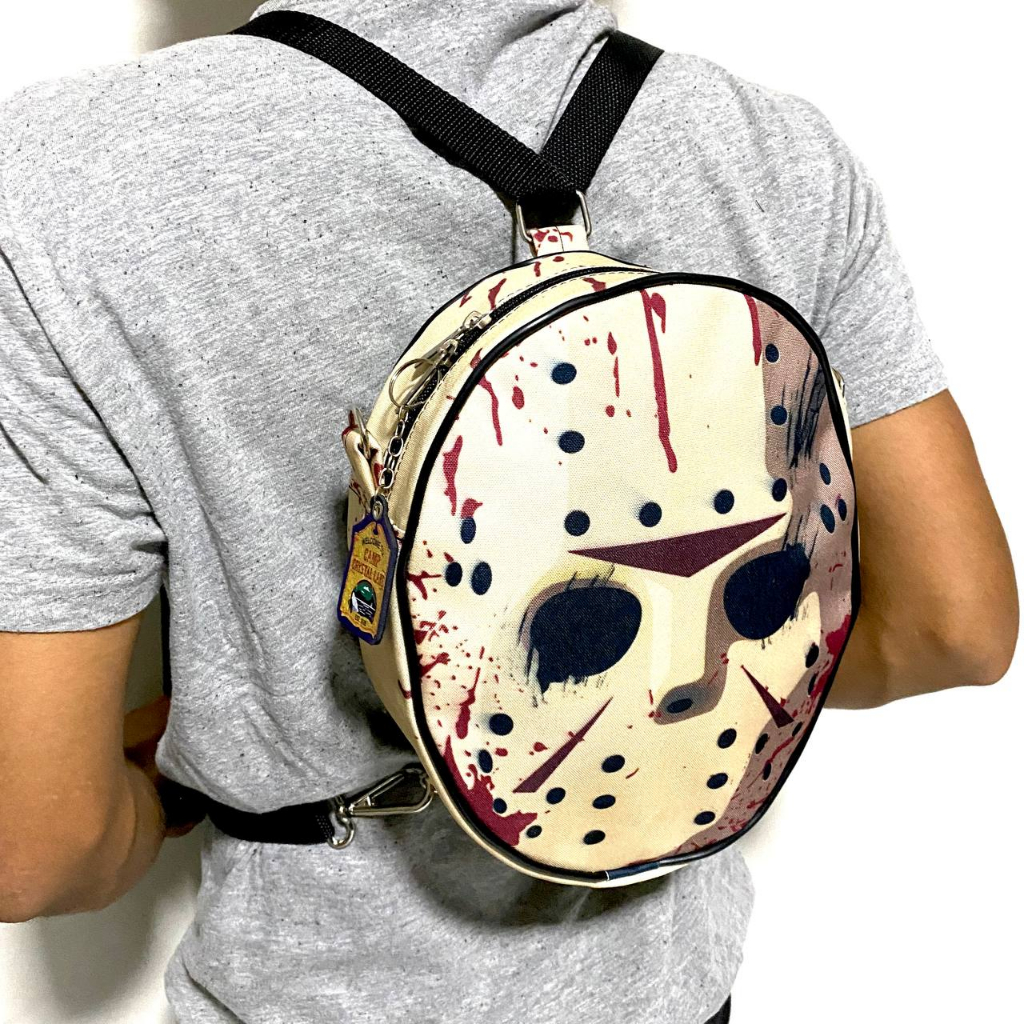 Mini Mochila e Bag 2 em 1 Jason voorhees filme sexta-feira 13 halloween terror versão sangue fake