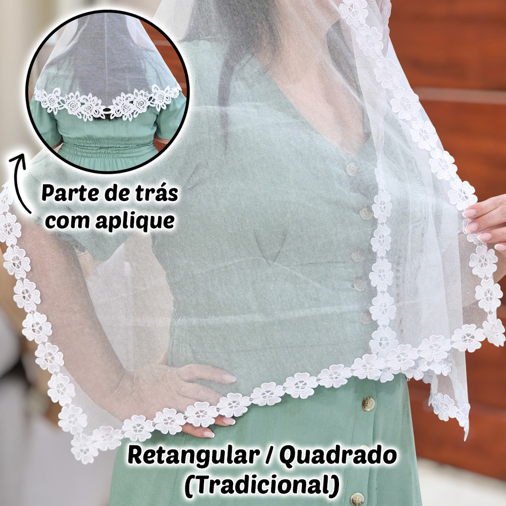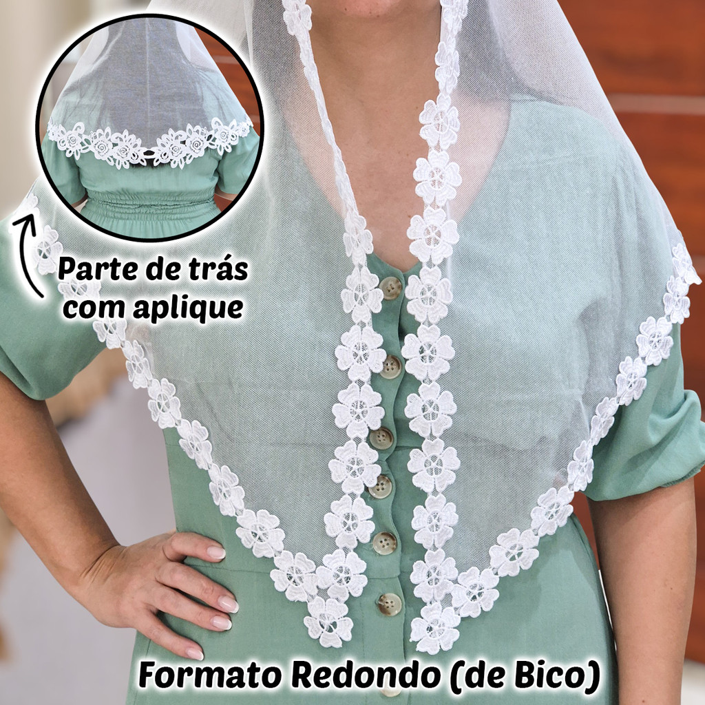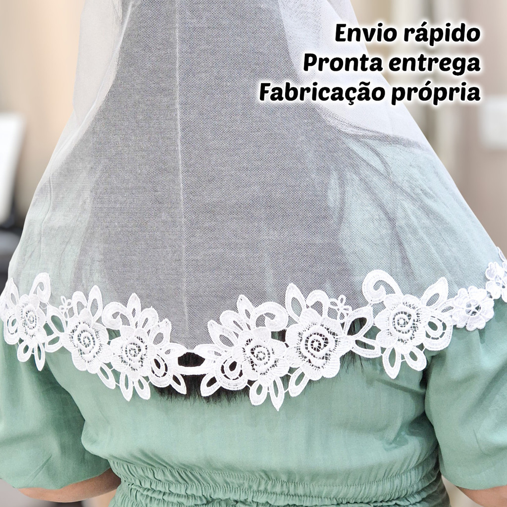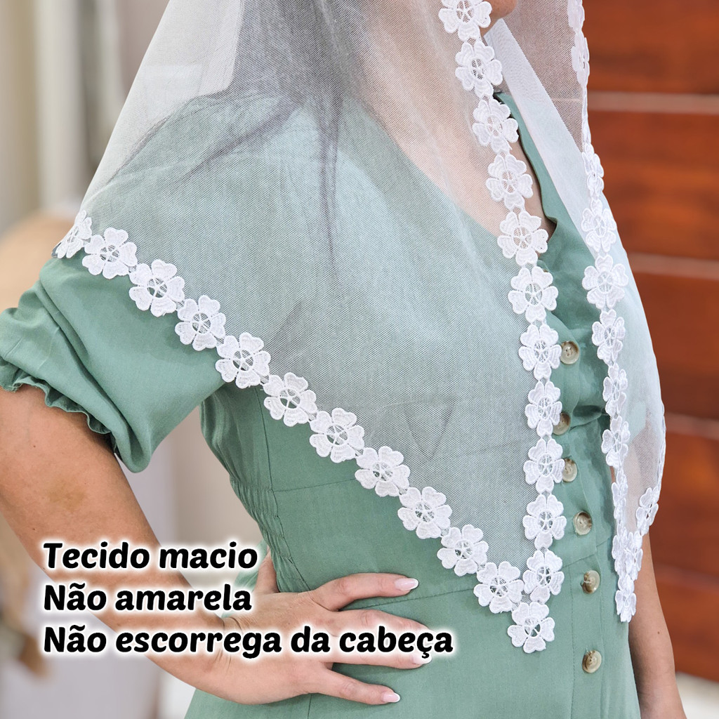 Véu Ccb Congregação Cristã Renda Guipir Floral Aplicada Adulto (mod. Neide)