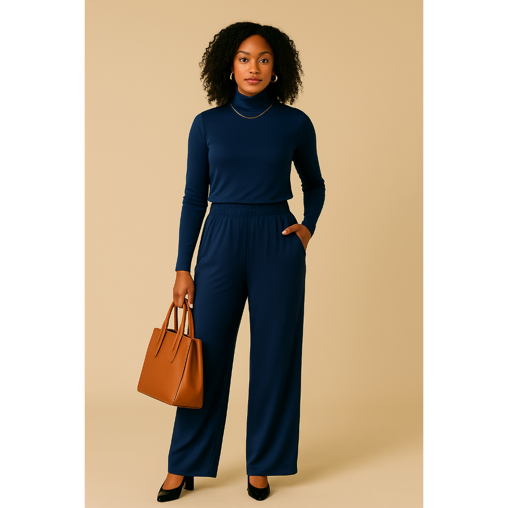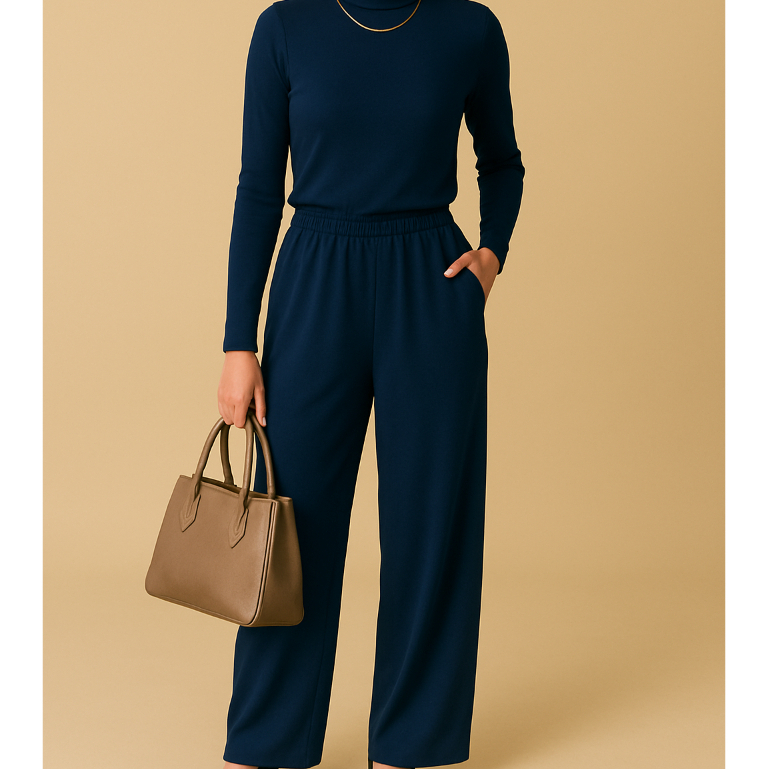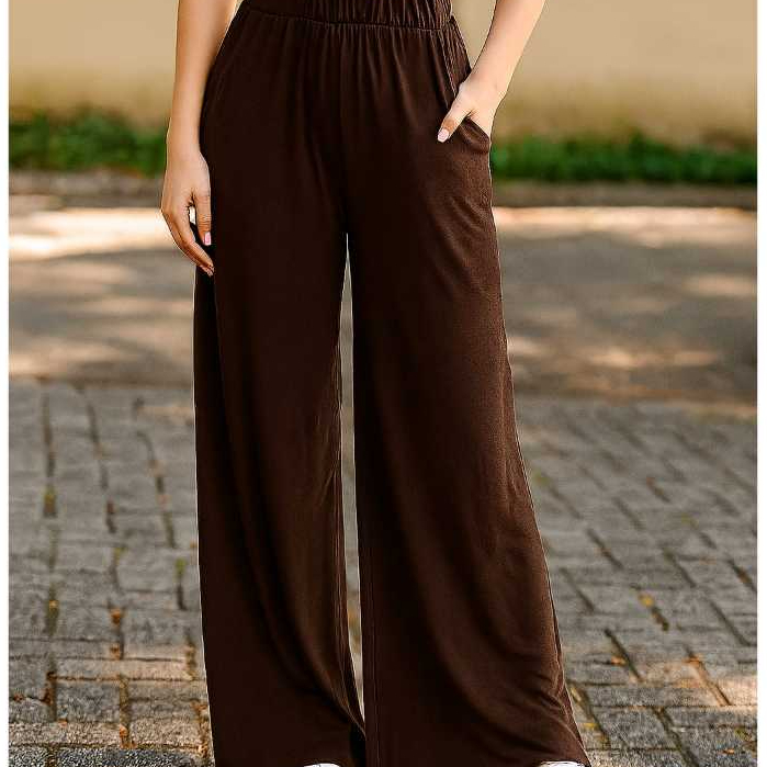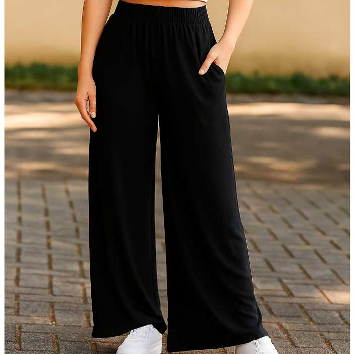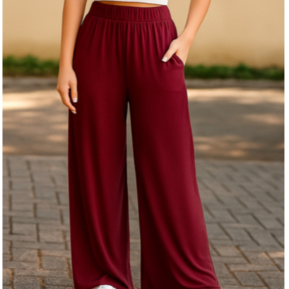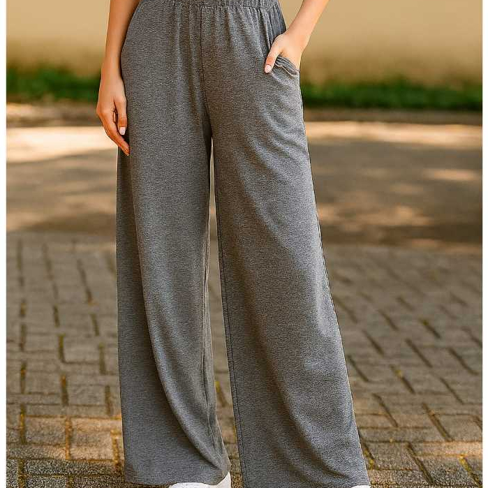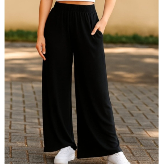Calça Pantalona em viscolycra confortável com bolso lateral e cós com elástico