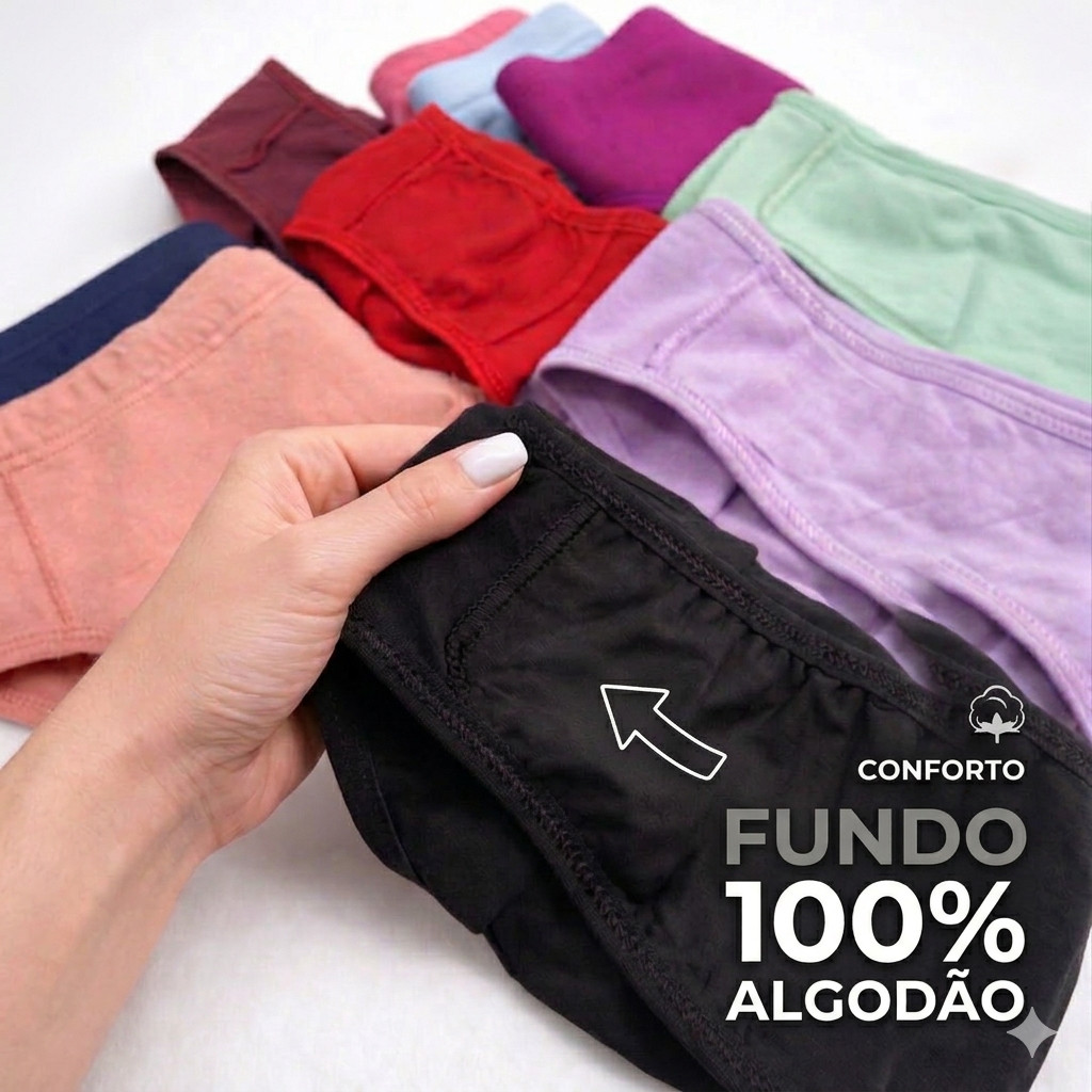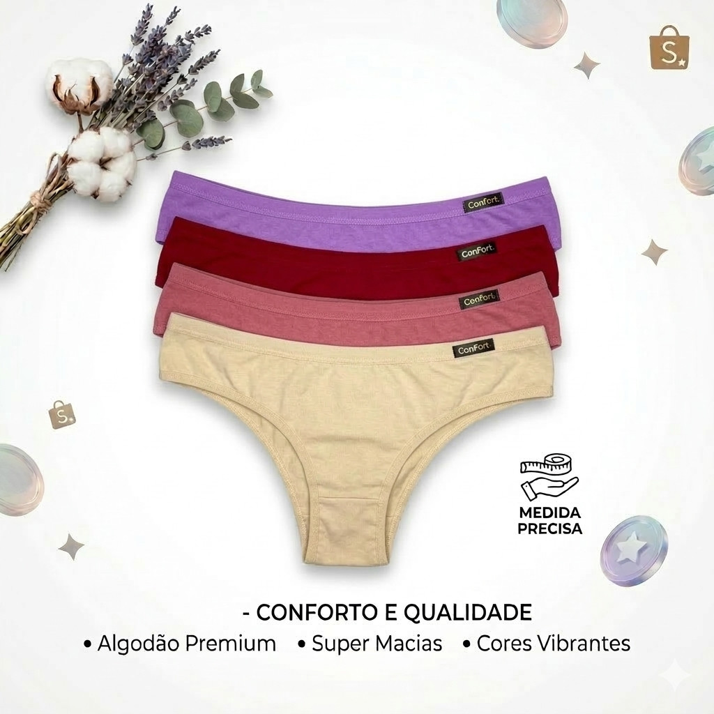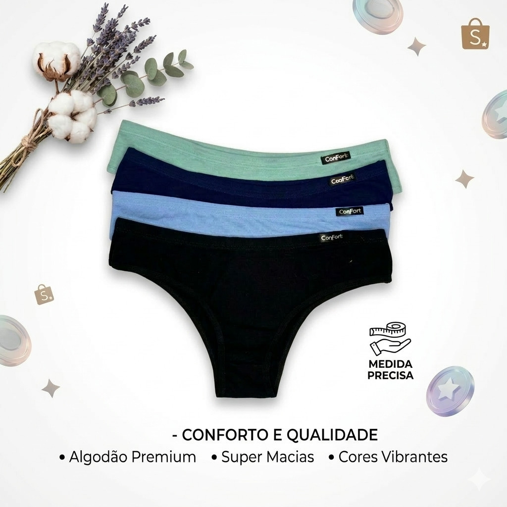 Kit 5 Calcinha De Algodão 100% Premium Feminina Dia a Dia Confortável Barato