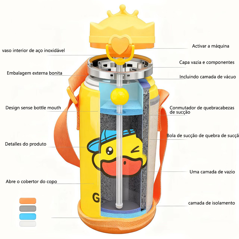 304 copo de aço inoxidável Pequeno pato amarelo canudo copo água Grande capacidade À prova vazamentos Tampa do salto